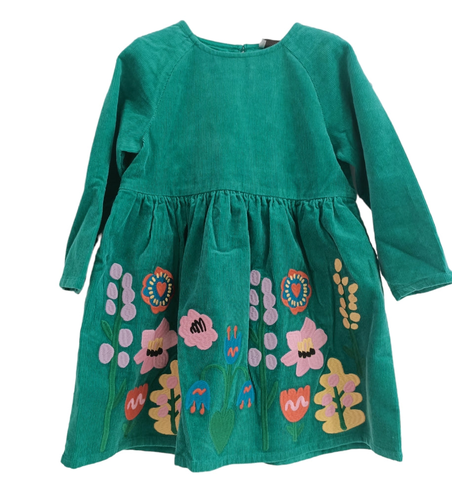 L'abito girocollo manica lunga è realizzato in tessuto a costine di 100% cotone biologico, con una decorazione a fiori in cotone che aggiunge un tocco di eleganza al look. Perfetto per essere indossato sia durante il giorno che la sera.