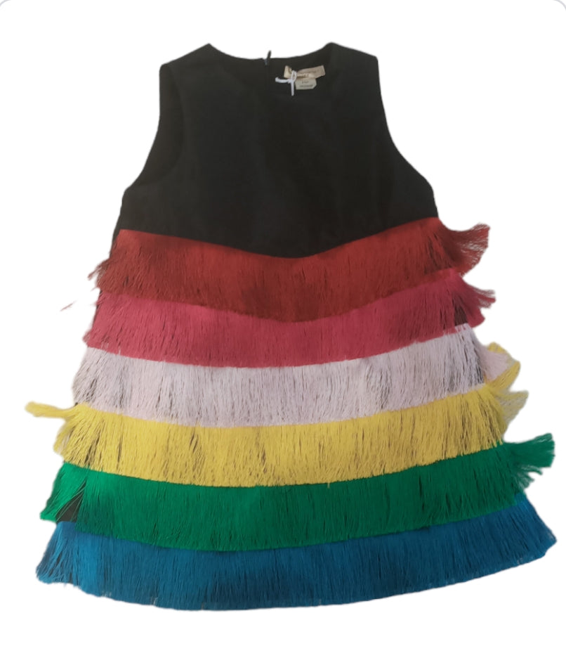 ABITO SMANICATO CON FRANGE MULTICOLOR