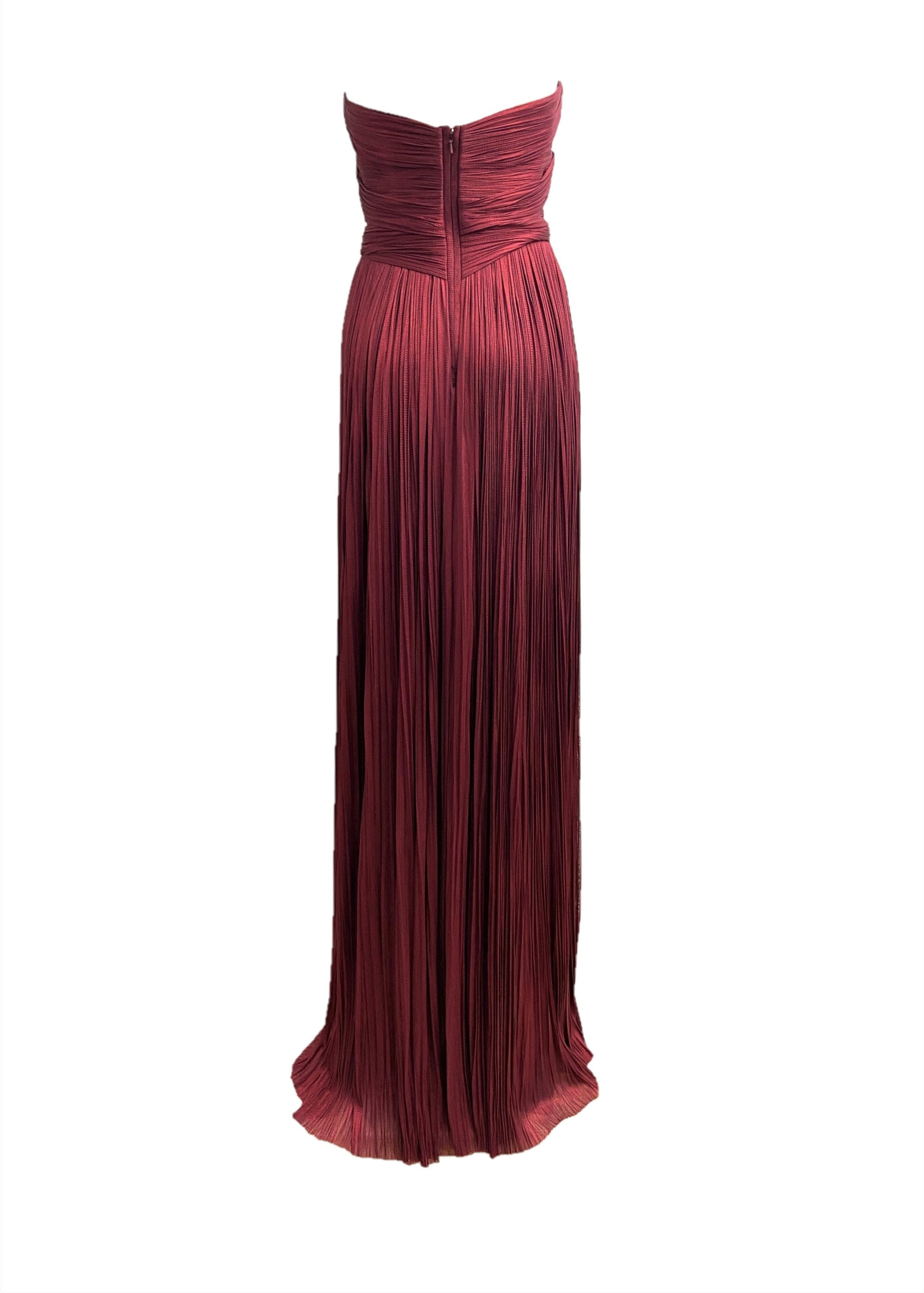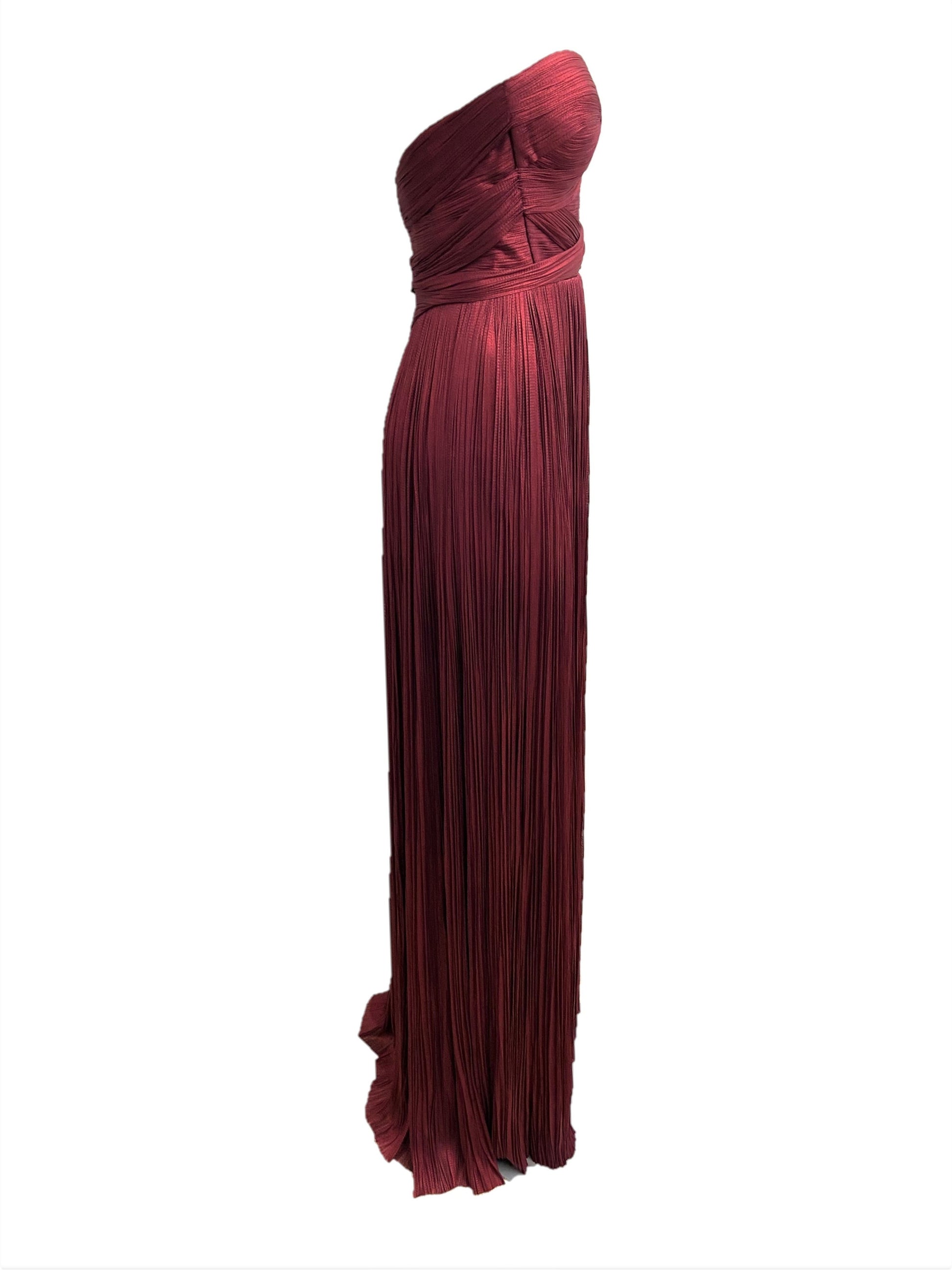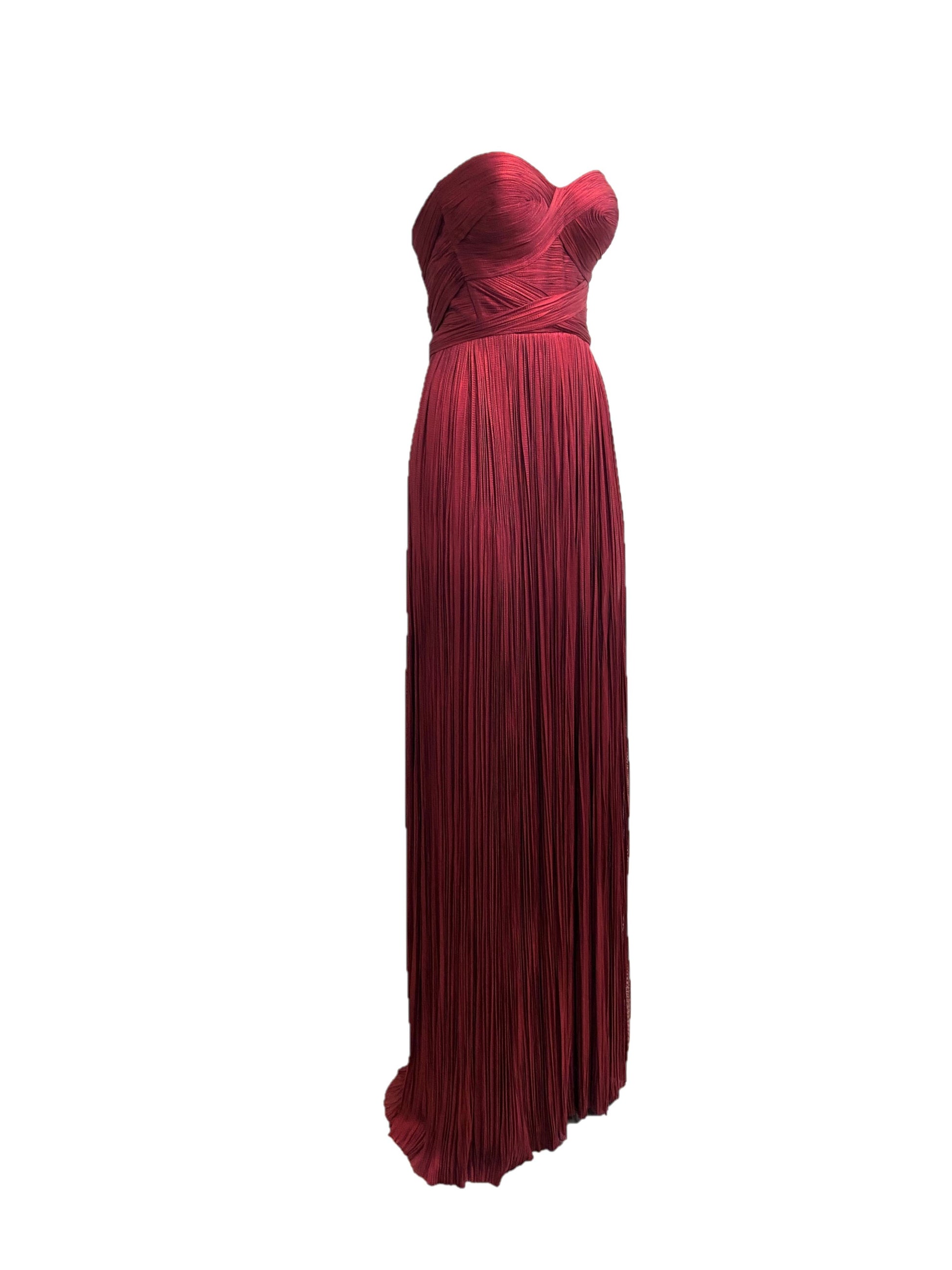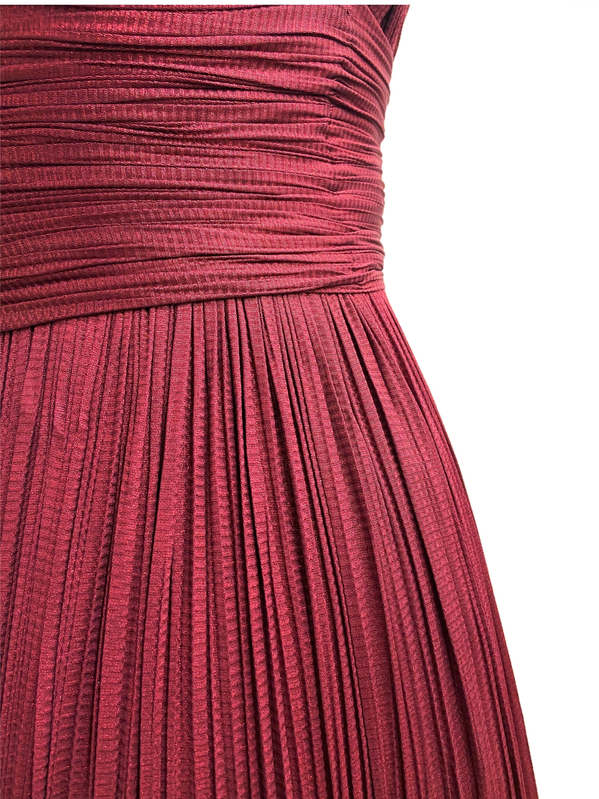 Vestito da sera o cerimonia Maria Lucia Hohan in tulle di seta elettrico rosso rubino con effetto metallizzato.