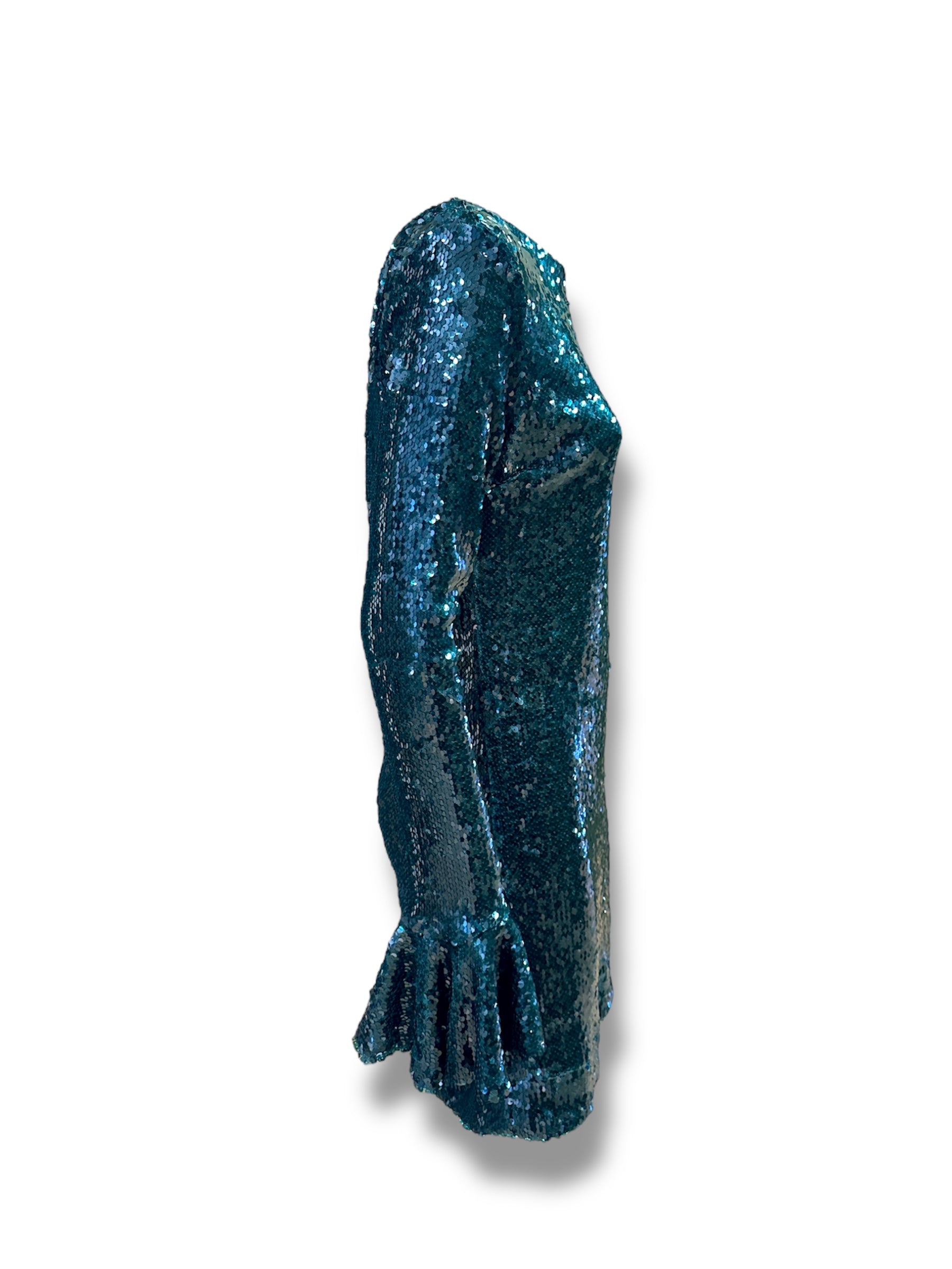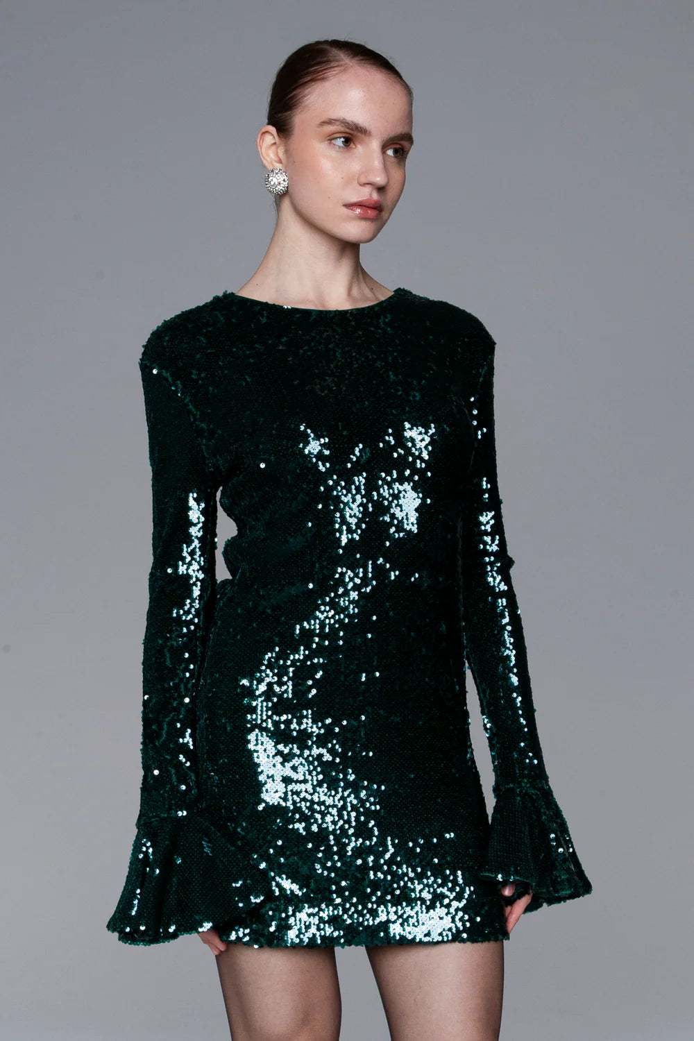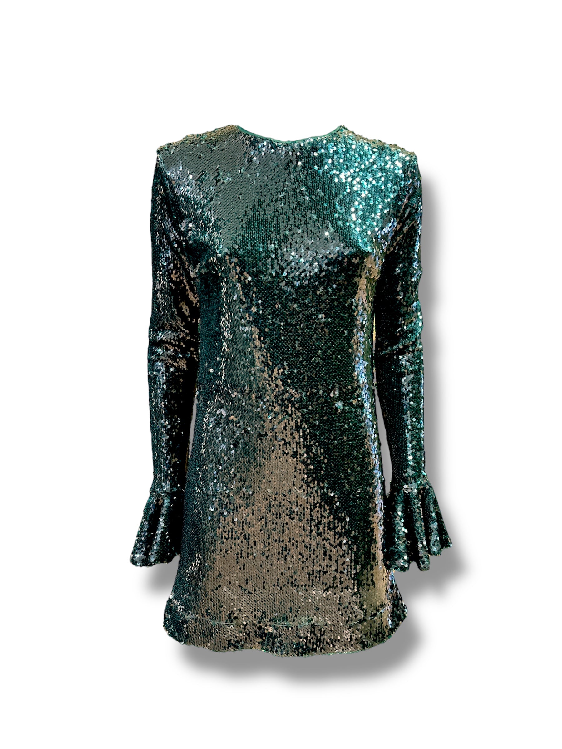 L’abito corto Lavi in pailletes verde smeraldo unisce design raffinato e materiali selezionati per un effetto luminoso e sofisticato. Le pailletes, distribuite con maestria, esaltano il verde intenso, creando un gioco di luce elegante. La linea corta valorizza la silhouette con una vestibilità studiata per garantire comfort e stile, rendendo questo capo ideale per eventi esclusivi dove la cura del dettaglio fa la differenza.