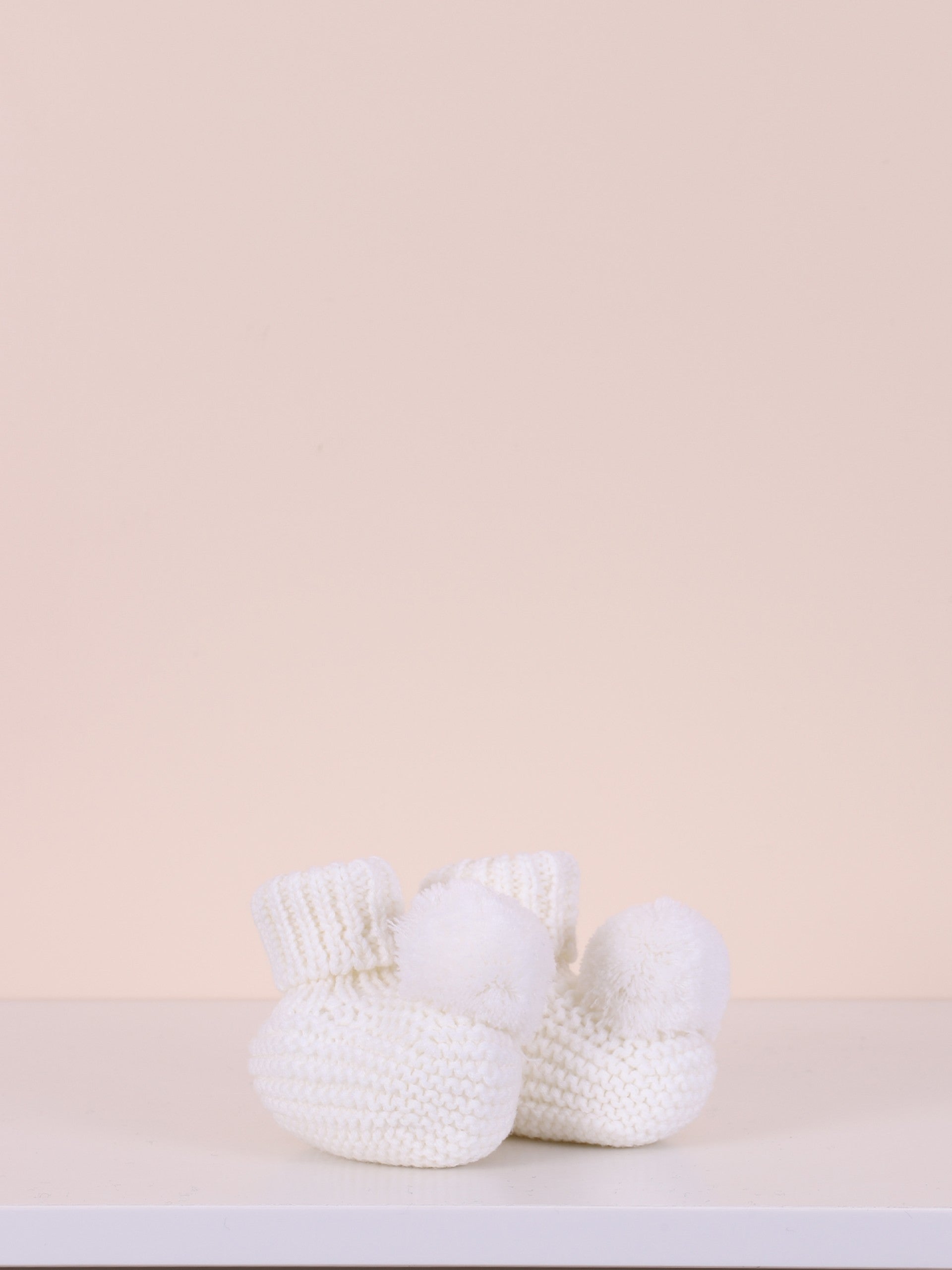 Bobble booties knitted in soft merino wool, great for baby boys and girls, up to 24 months. Produced in Wholegarment, seamless one piece, for maximum comfort for your baby.