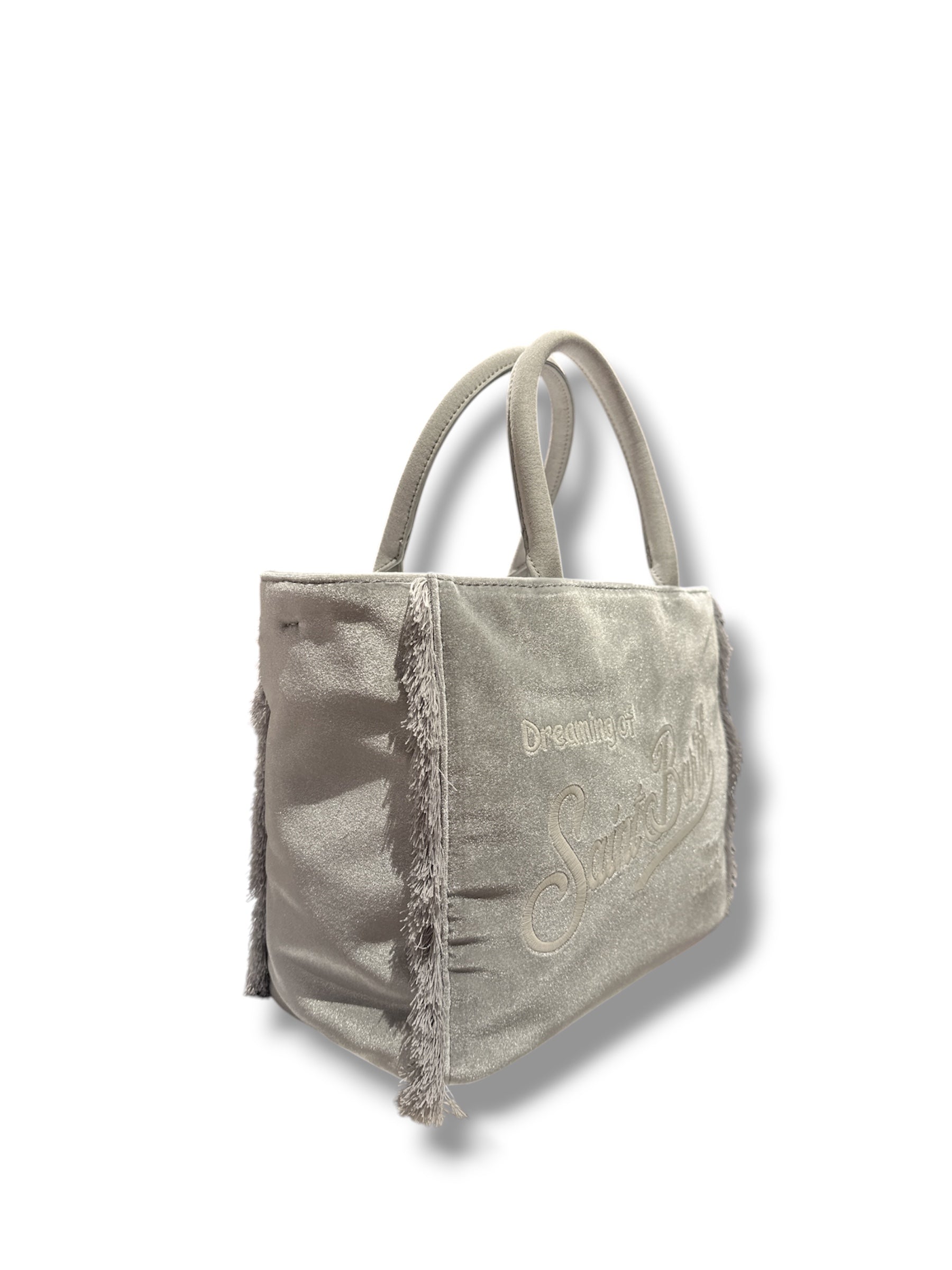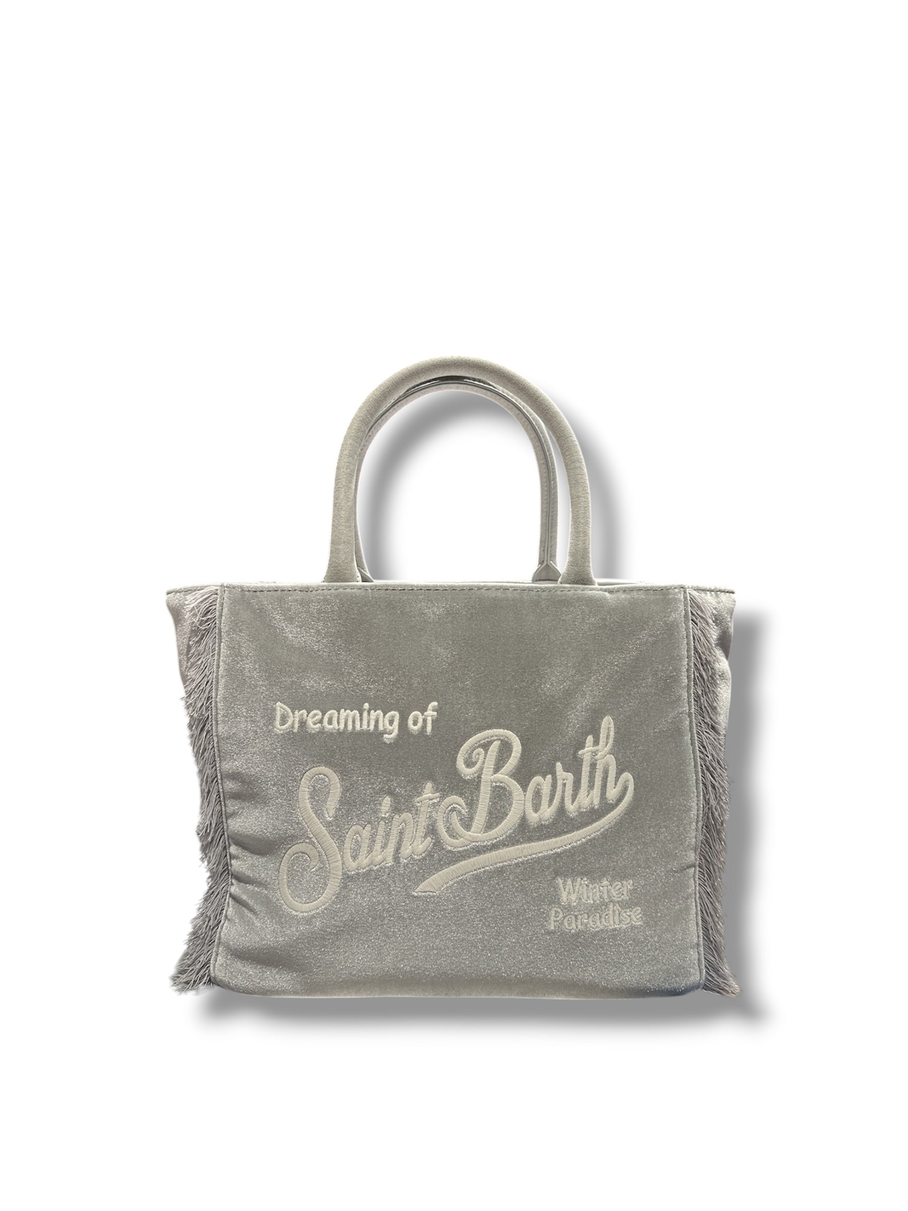 Velvet handbag MC2 Saint Barth Adjustable and removable shoulder strap Solid Silver Embroidered logo Dimensions: 27 x 25 x 14