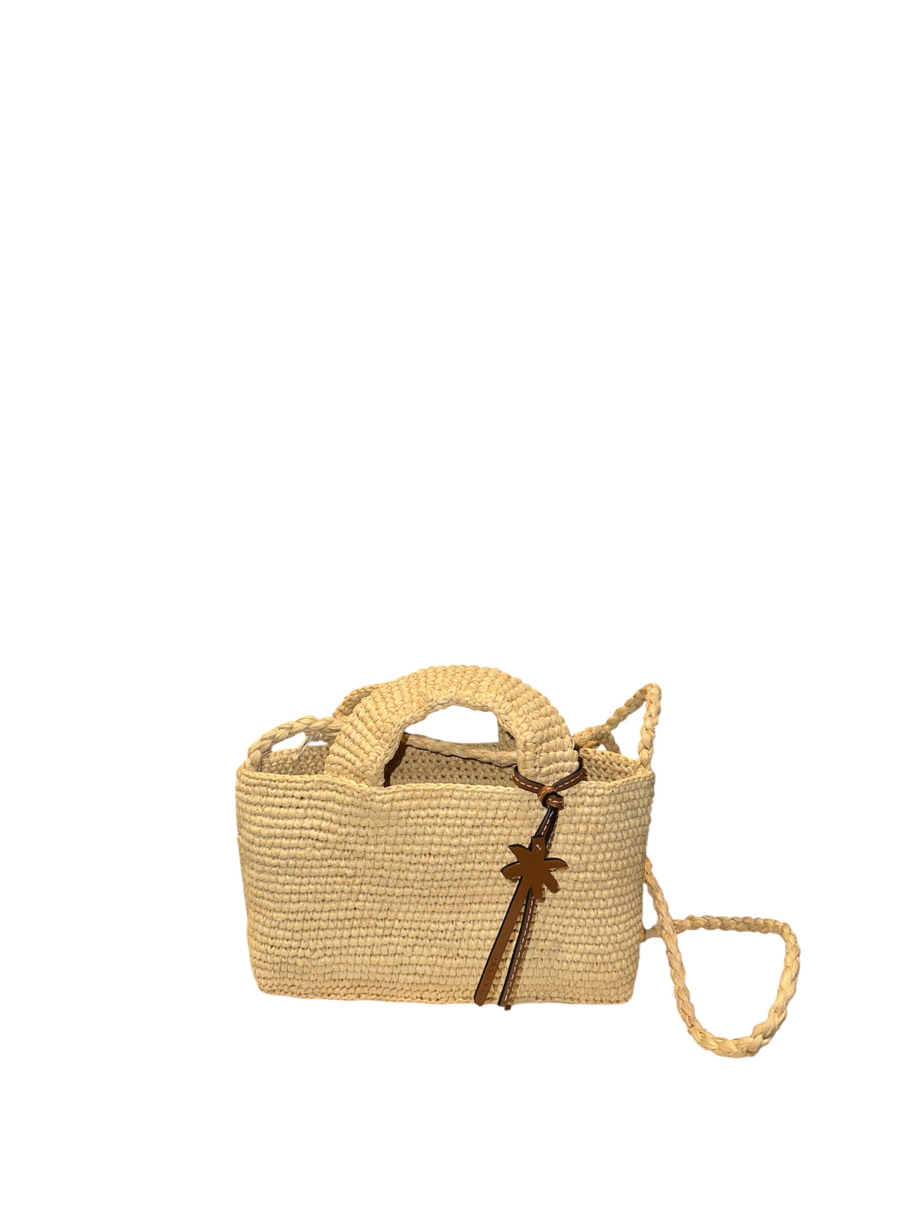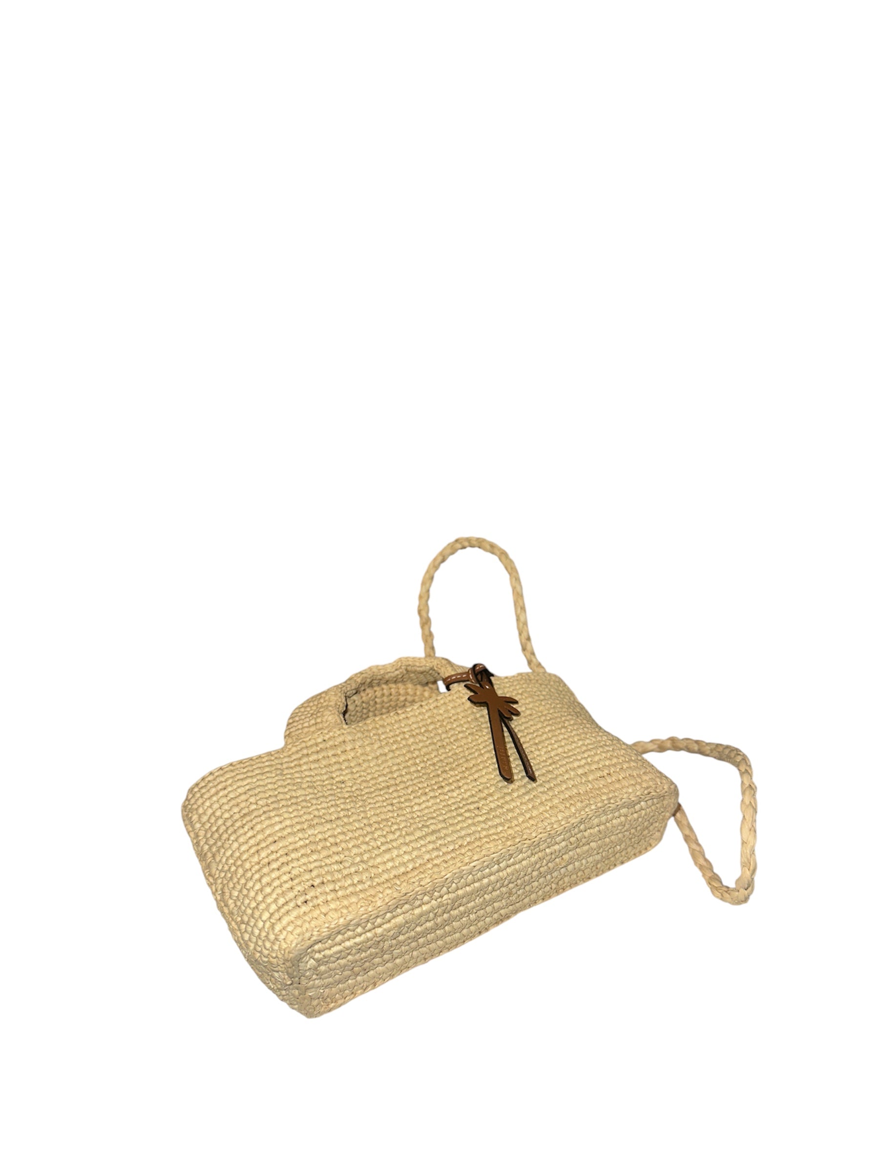 mini bag in rafia taturale intrecciata a mano , piccola ed elegante, è la compagna perfetta per il giorno ma anche su abiti da cocktail per un tocco esotico