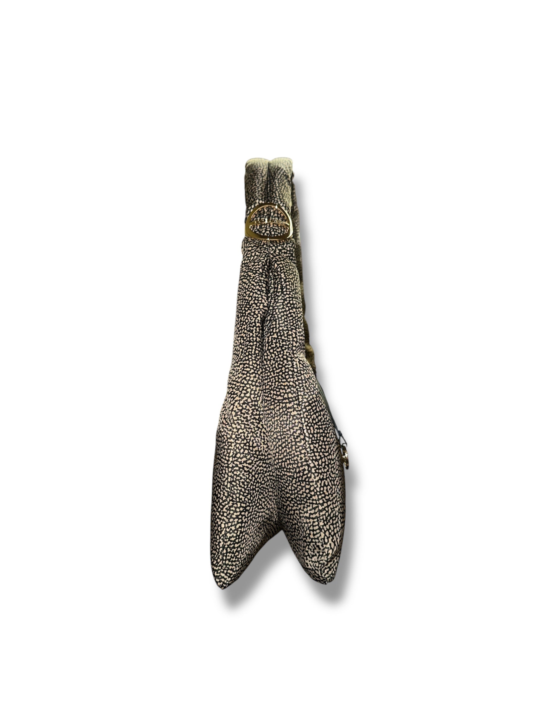 - Chiusura esterna con zip metallo e tirazip in pelle con elementi decorativi a vite e placchetta logati