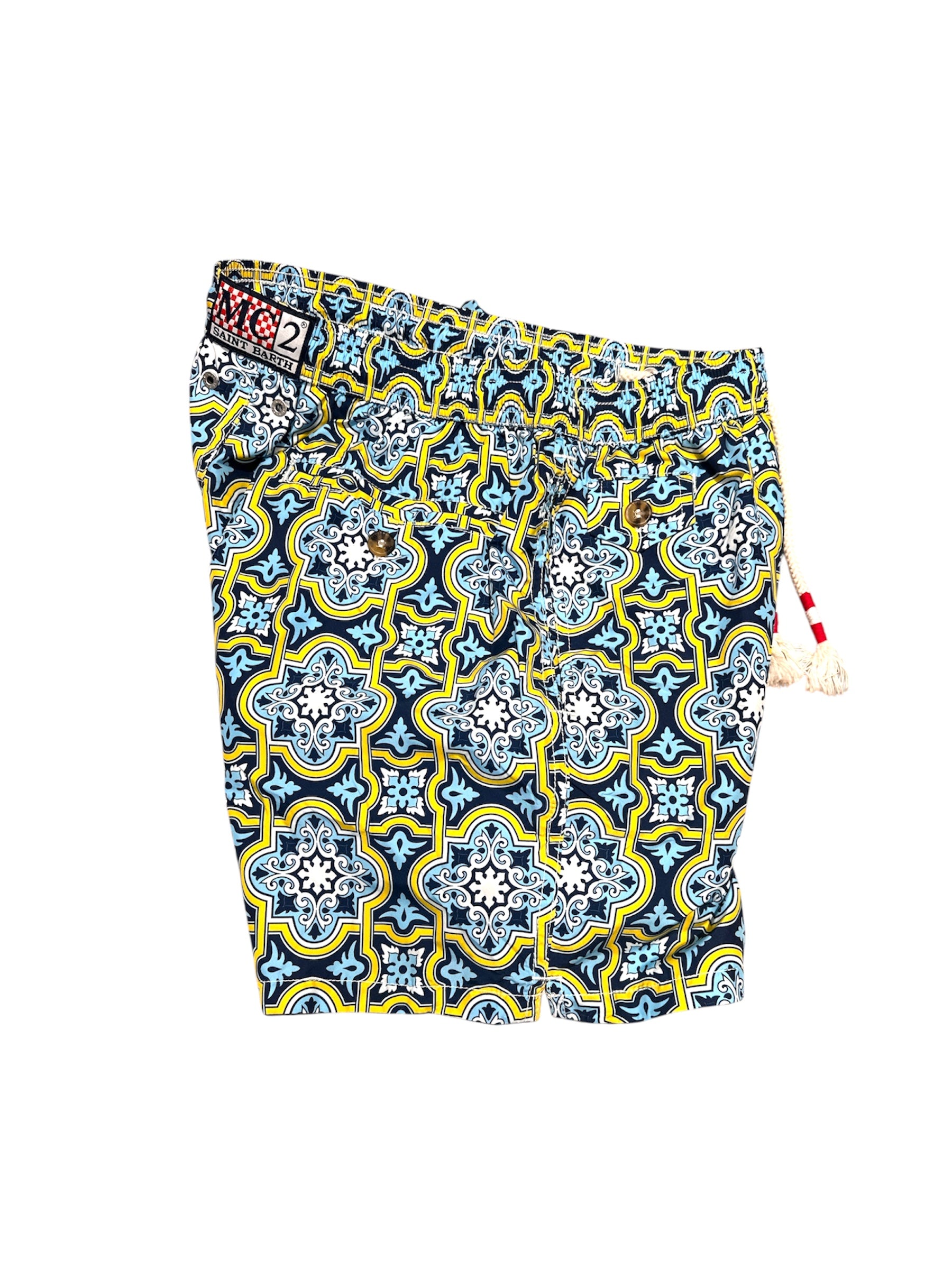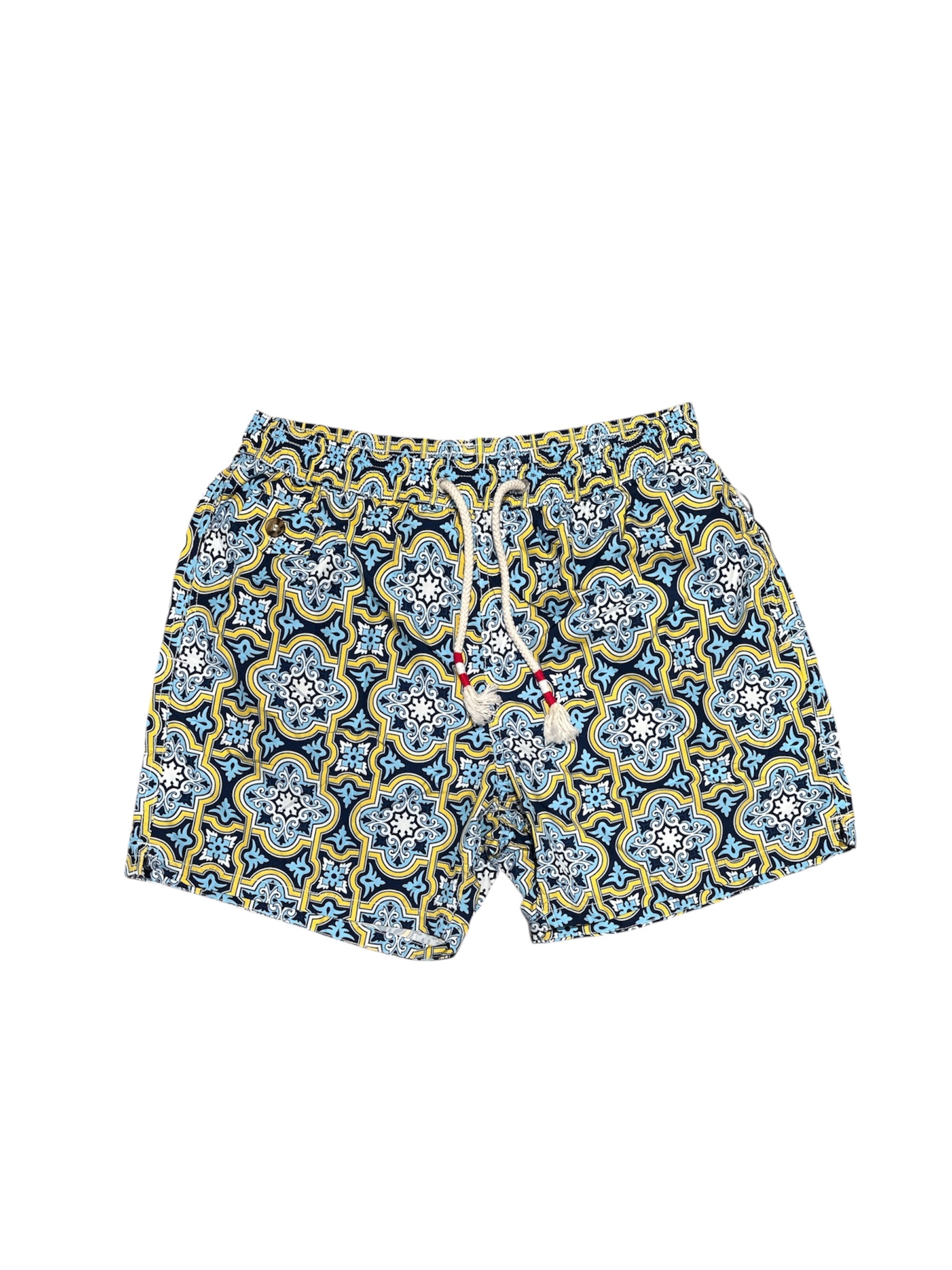 I pantaloncini uomo da bagno di media lunghezza Man Lighting 70 sono progettati con un tessuto leggero che si asciuga rapidamente, guadagnandosi il nome Lighting. La cintura elasticizzata garantisce una vestibilità comoda, mentre gli occhielli logati sono posizionati strategicamente per drenare l'acqua ed evitare che i pantaloncini si gonfino. La coulisse in corda bianca con punta in filo rosso e l'assenza di componenti metalliche le donano un tocco retrò. Dotati di tasche laterali con cuciture alla francese e di una tasca posteriore applicata con chiusura con bottone, questi pantaloncini da bagno sono pratici ed eleganti. Inoltre, c'è una piccola tasca interna per monete per una maggiore comodità. La stampa all-over aggiunge un tocco di stile a questa versatile opzione di costume da bagno. Realizzati in poliestere riciclato al 100%, questi pantaloncini riflettono il nostro impegno per la sostenibilità.