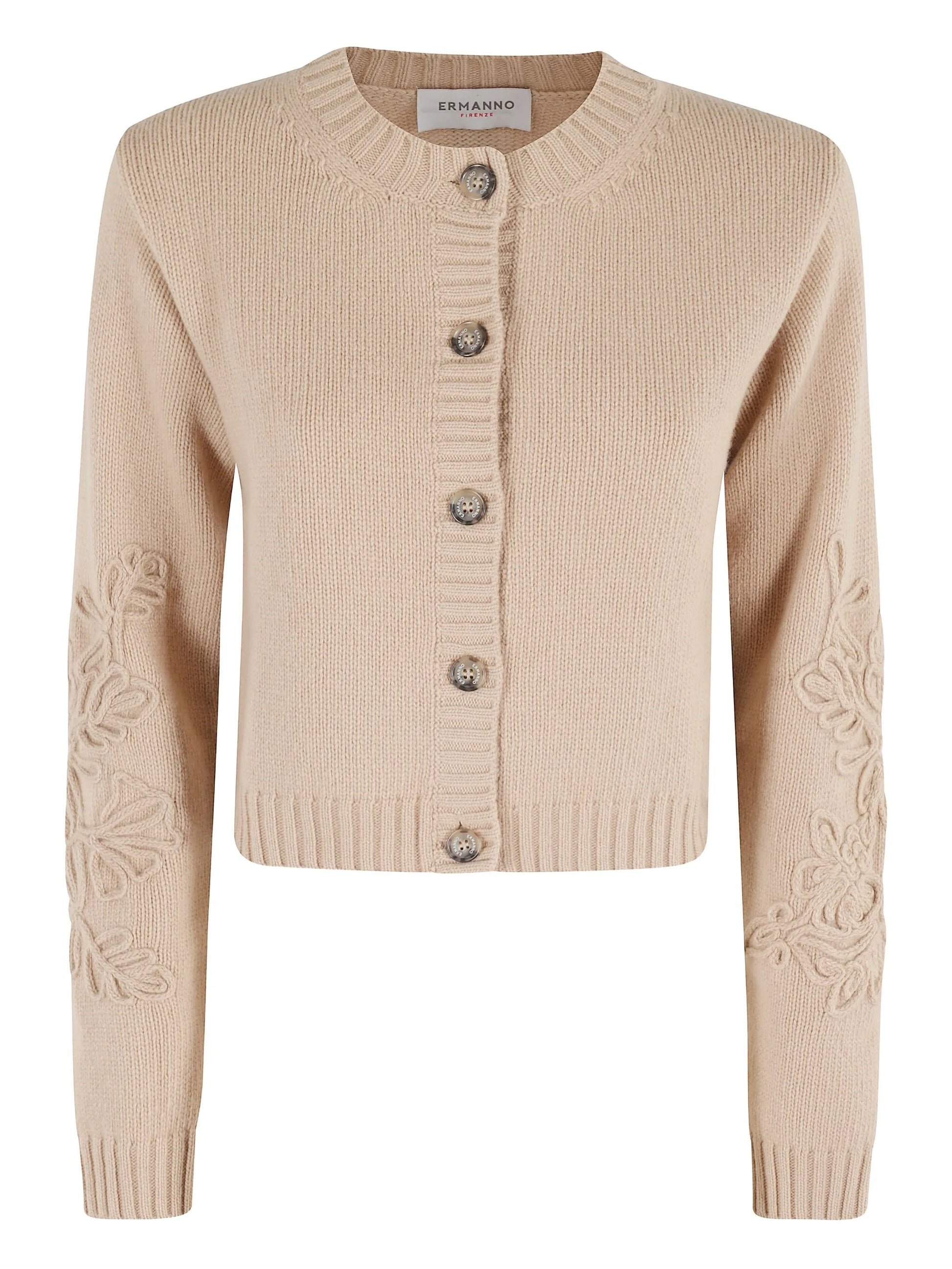 Cardigan Ermanno Firenze con ricamo floreale e bottoni