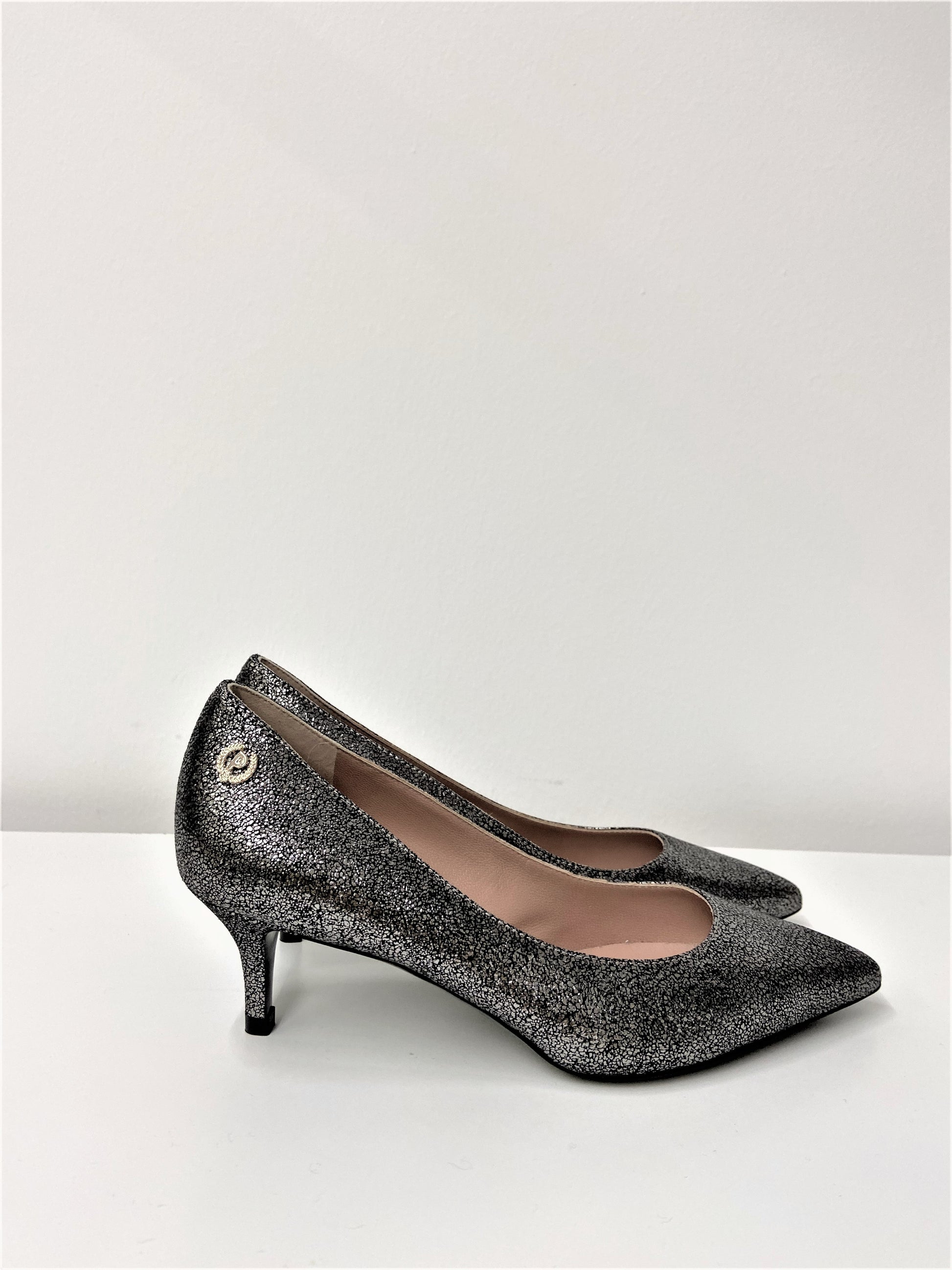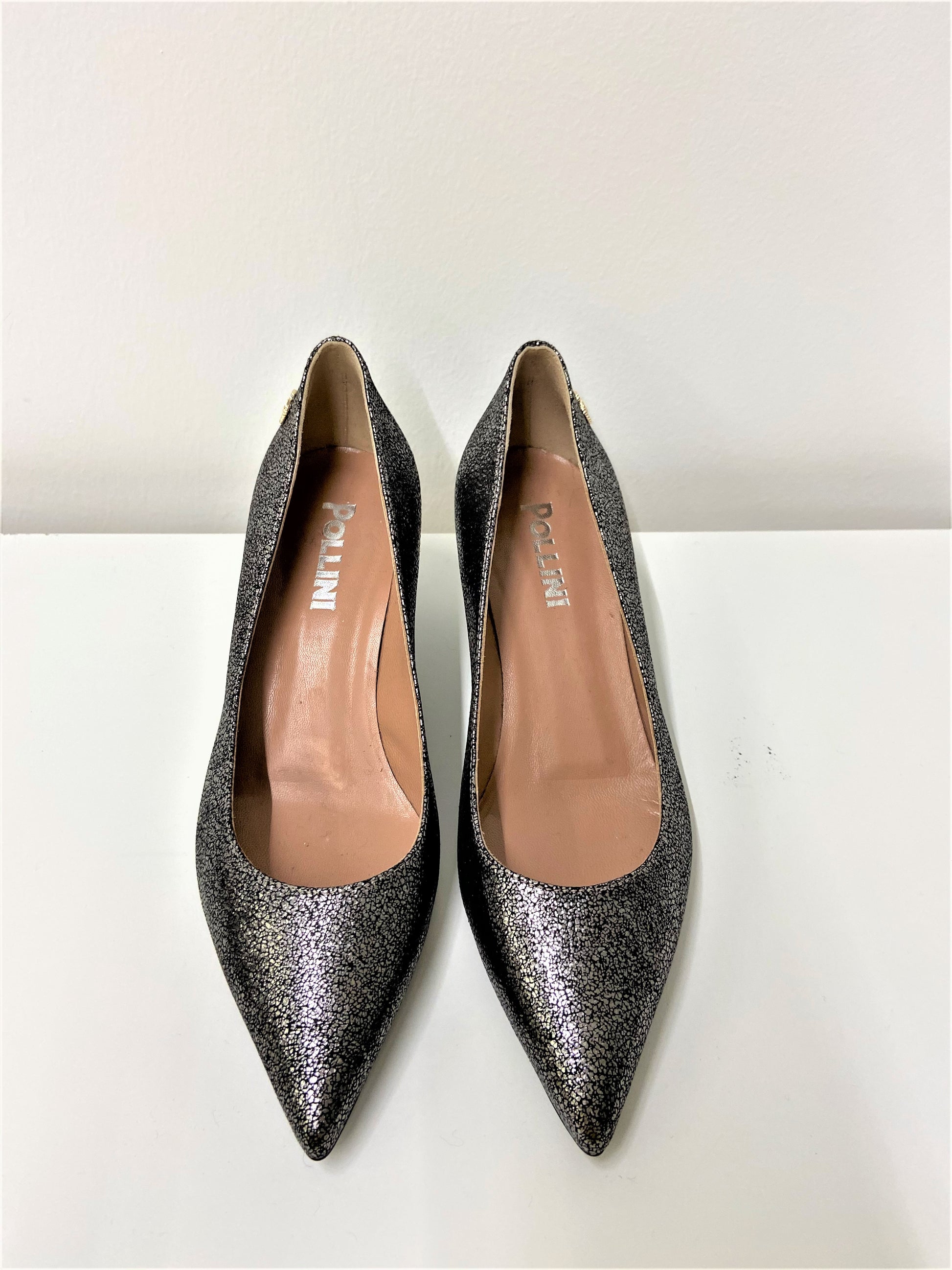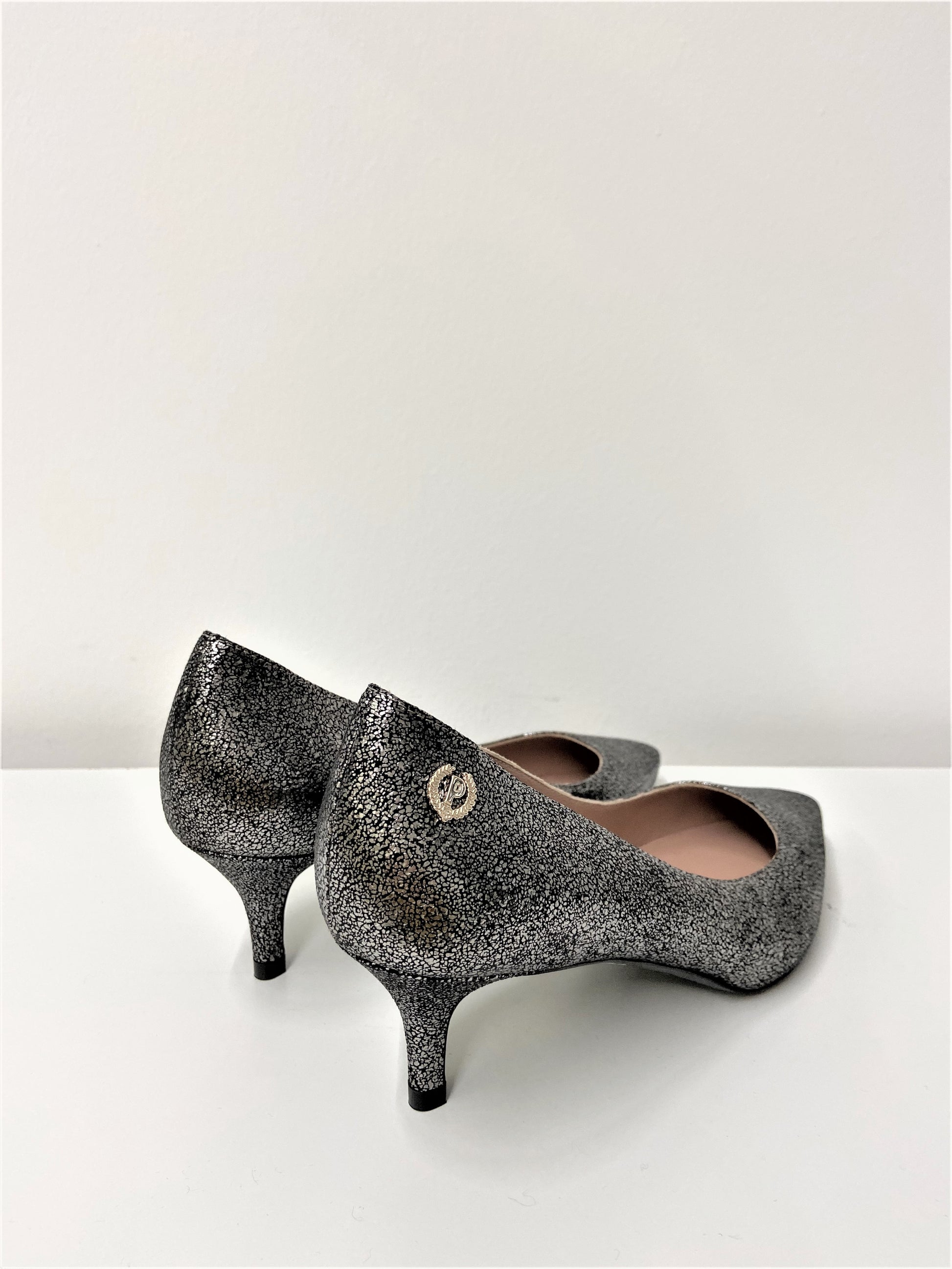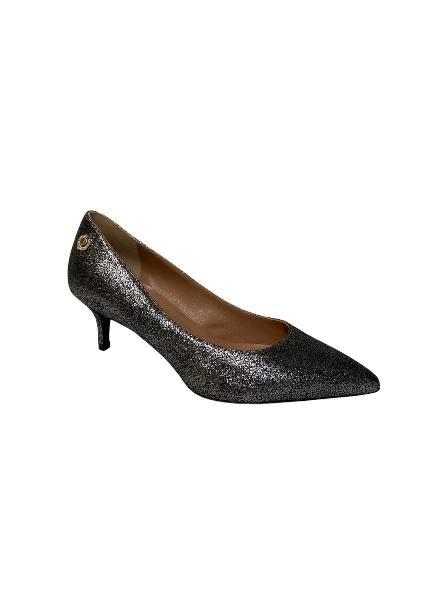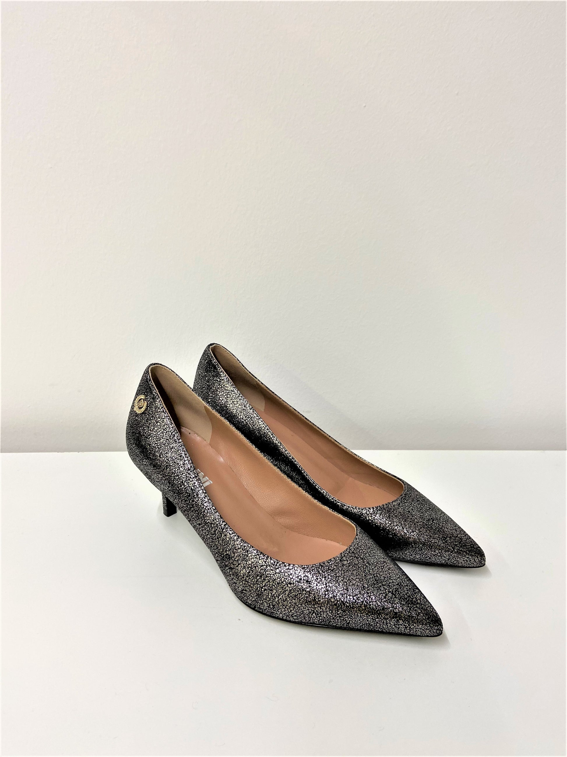 Scarpa POLLINI modello decolletè in pelle laminato acciaio opaco con tacco 5.5 cm