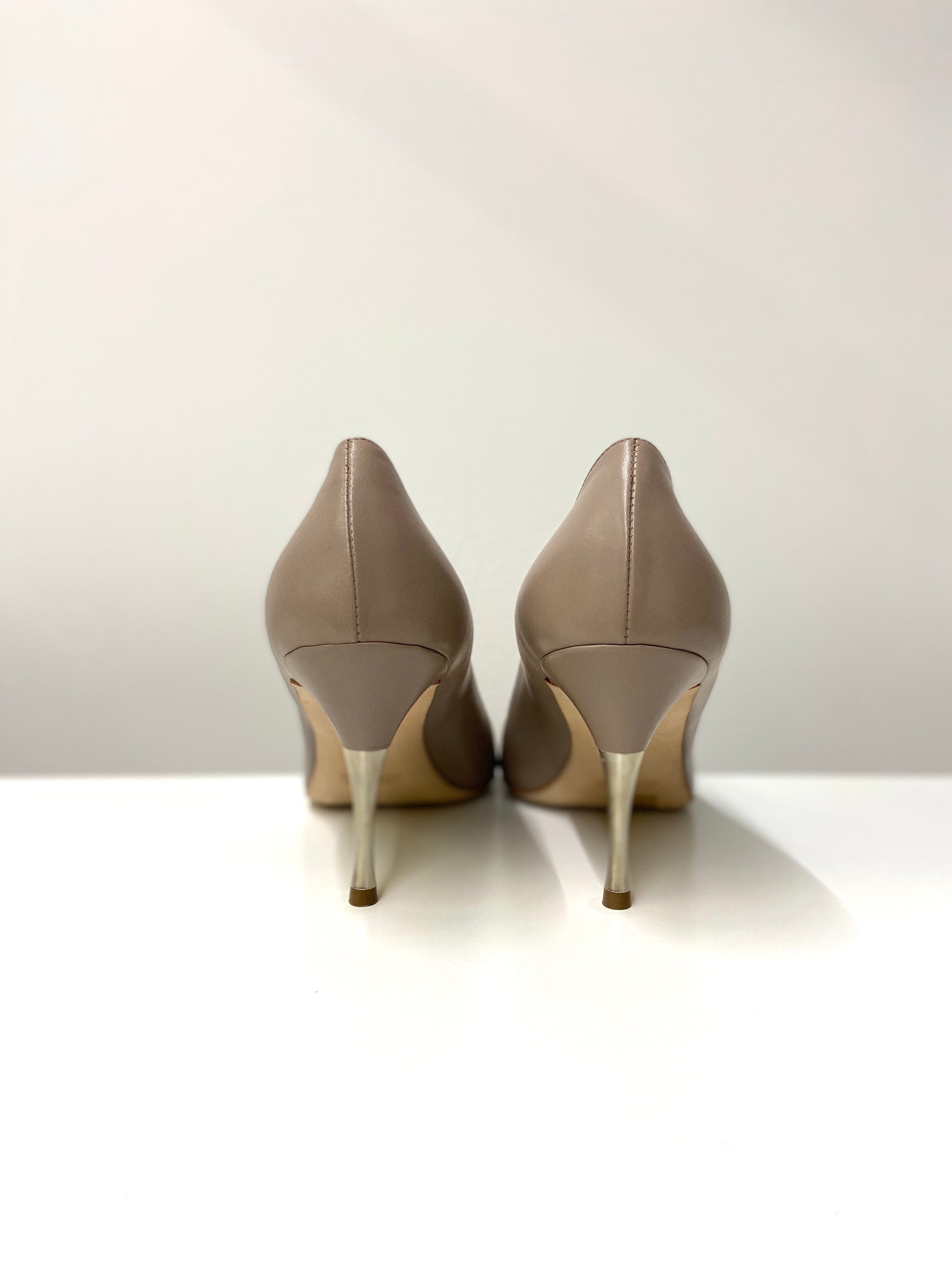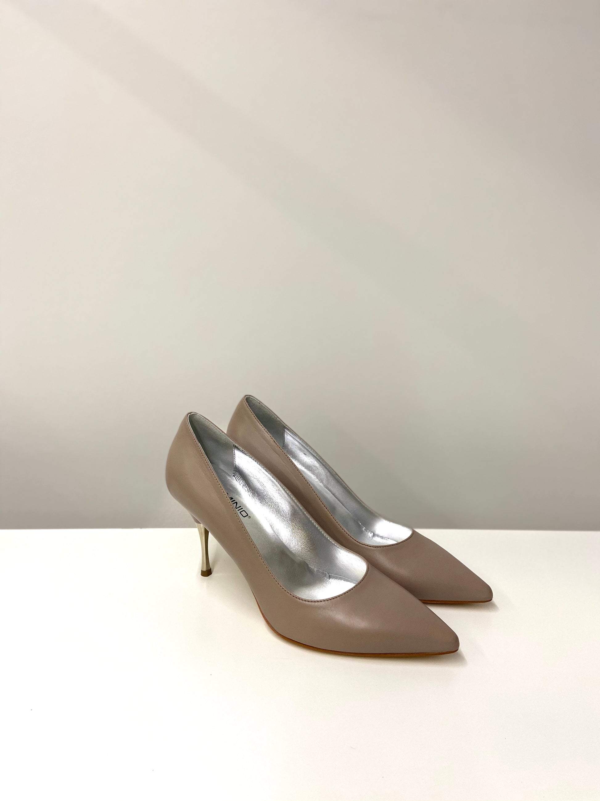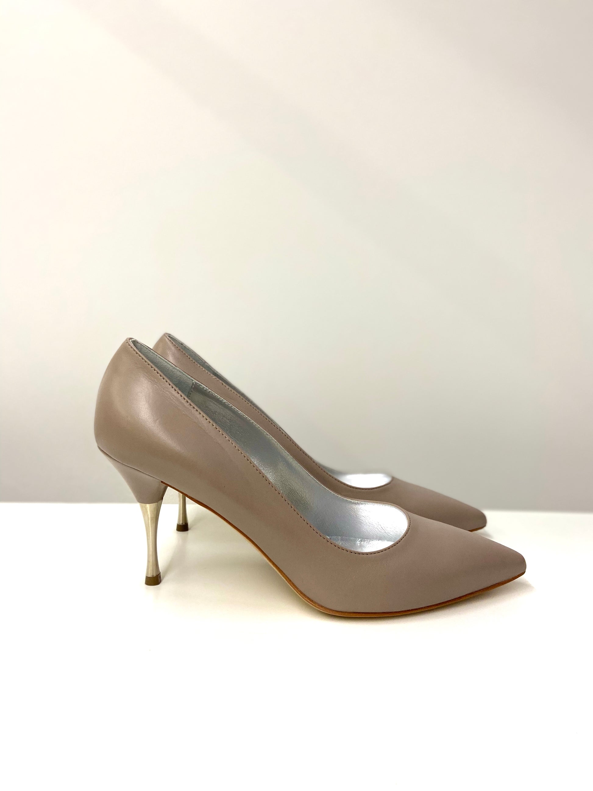 Scarpa decolletè in pelle taupe con tacco in acciaio