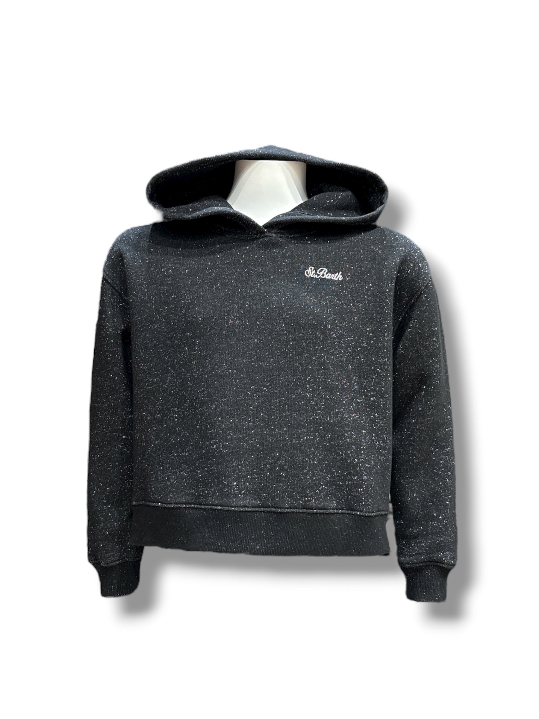 Felpa con cappuccio Saint Barth in colore nero con lurex per bambina e ragazza