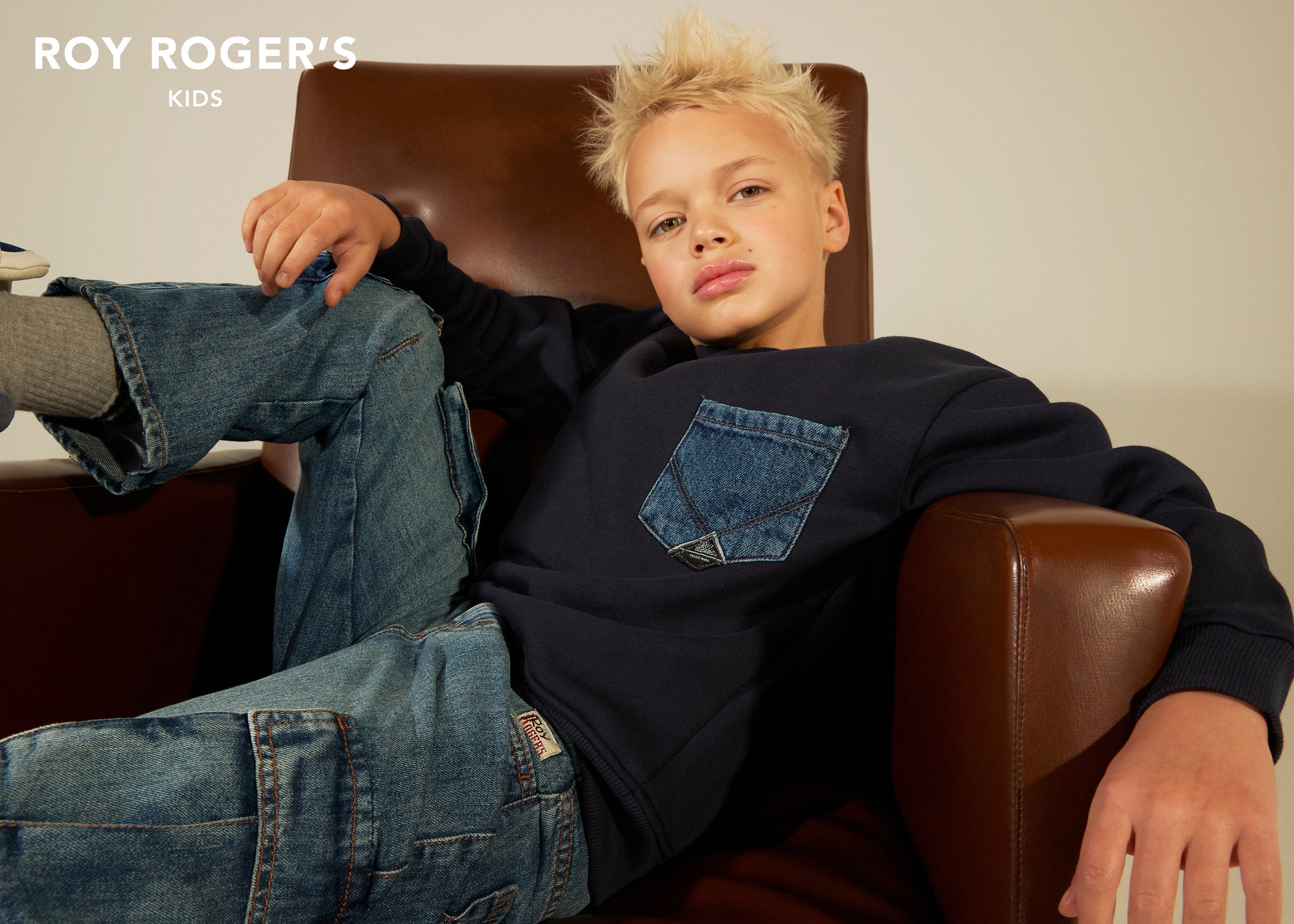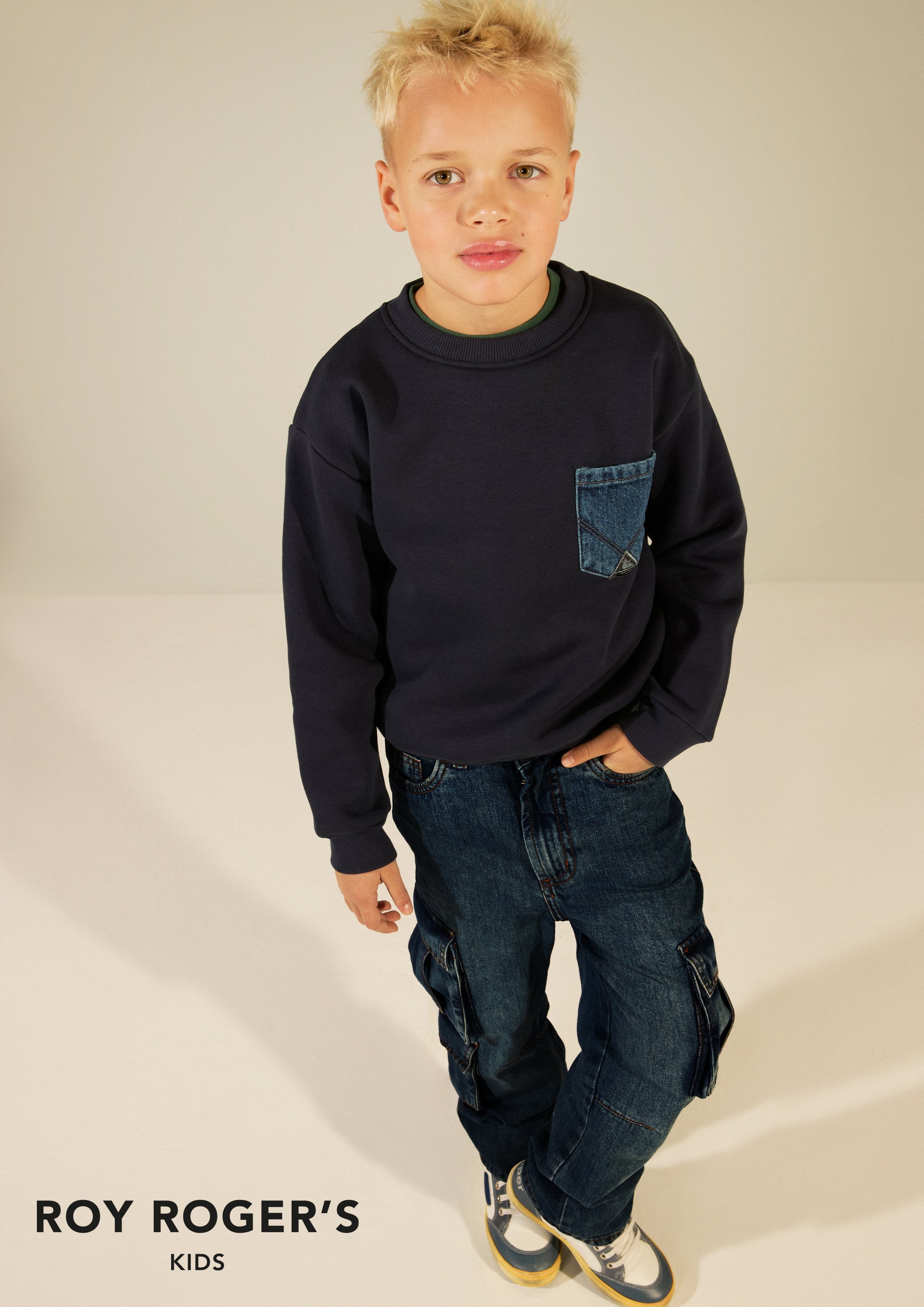 - Tasca piatta in denim sul petto con label Roy Roger's applicato.