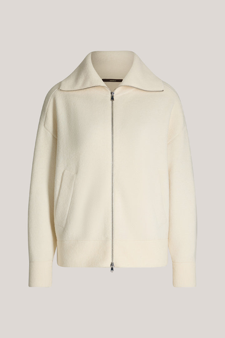 Questa giacca in misto lana vergine elasticizzata con le spalle scese si distingue come un pezzo comodo. Il colletto stand-up e la zip bidirezionale evidenziano lo stile, completato da polsini a costine.