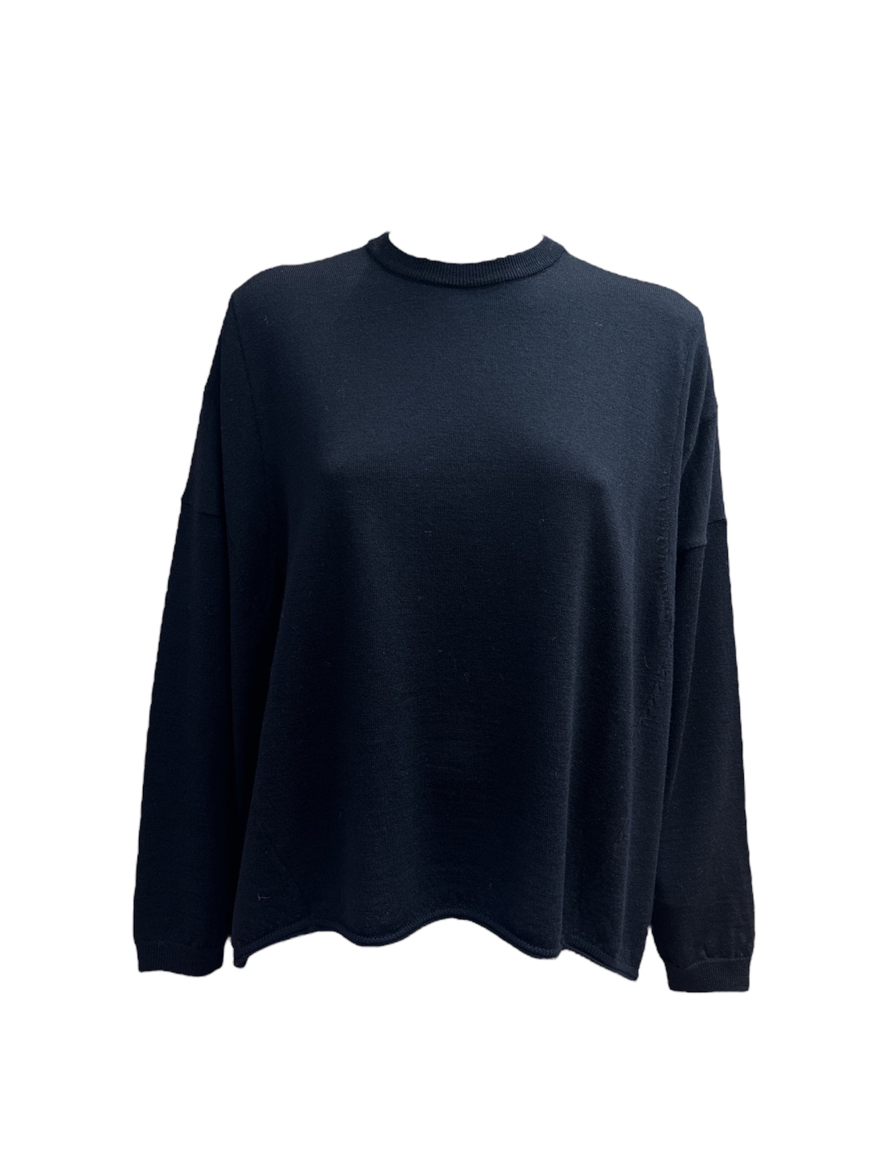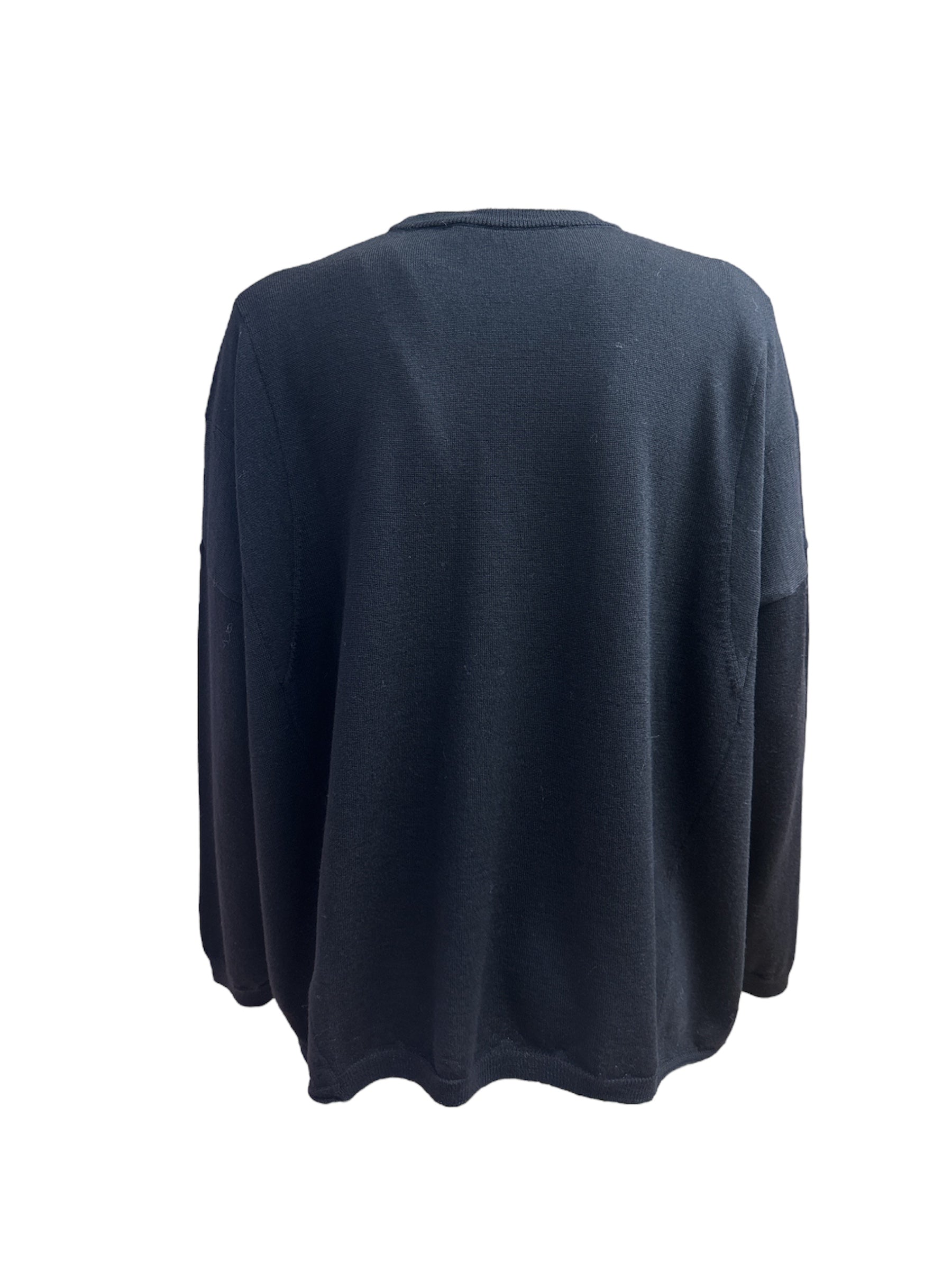 Maglia girocollo nera Sharon^B ampia in lana merinos