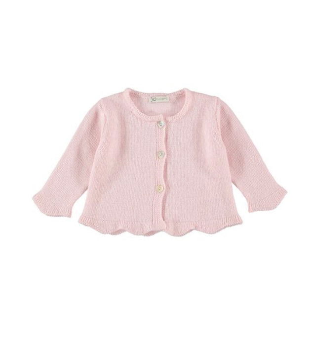 Giacchina coreana in lana e cashmere rosa con fondo e polsino lavorato a cappe