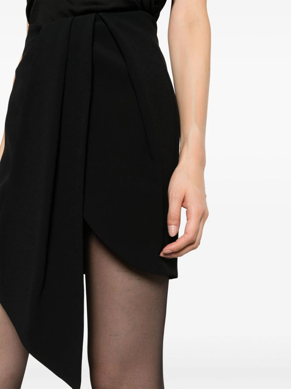 Federica Tosi : Mini gonna in crepe cady nero con dettaglio di pannello laterale drappeggiato