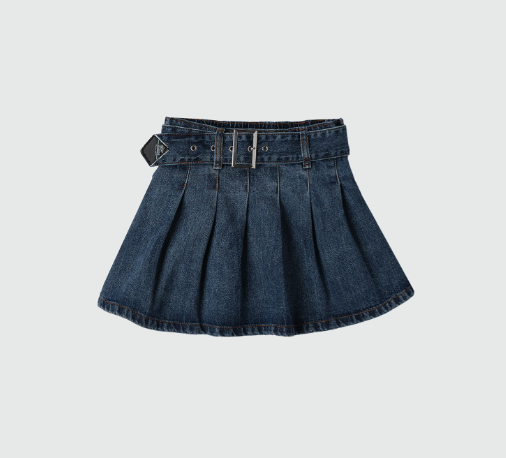 - Gonna a pieghe di manifattura italiana in denim con lavaggio scuro.