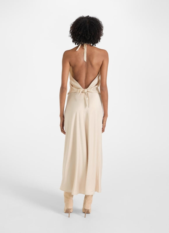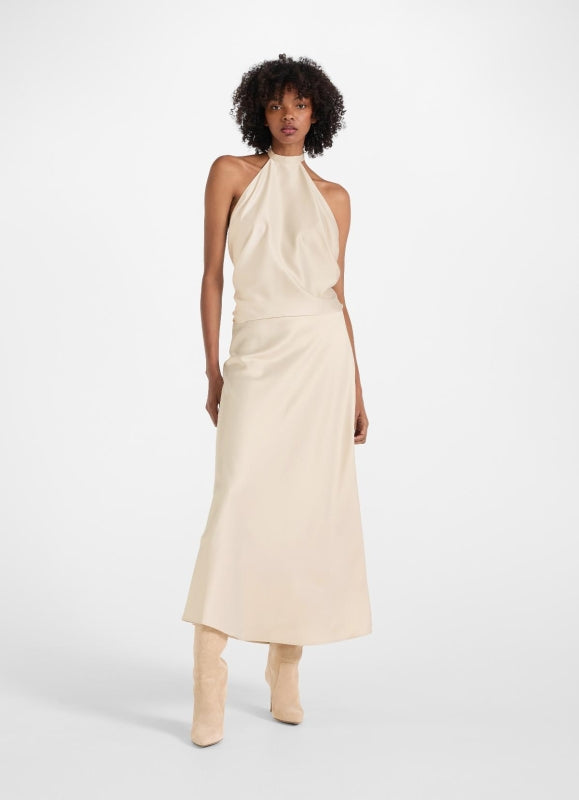 Gonna longuette raso Juvia, zip laterale, vita alta