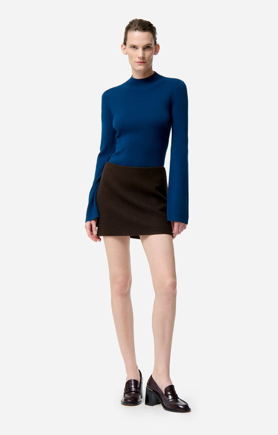 Il modello TOLMIA è una mini gonna che combina la sartoria con la femminilità sicura di sé. La sua linea corta ma strutturata lo rende facile da abbinare a un maglione in maglia o a una camicia fluente.