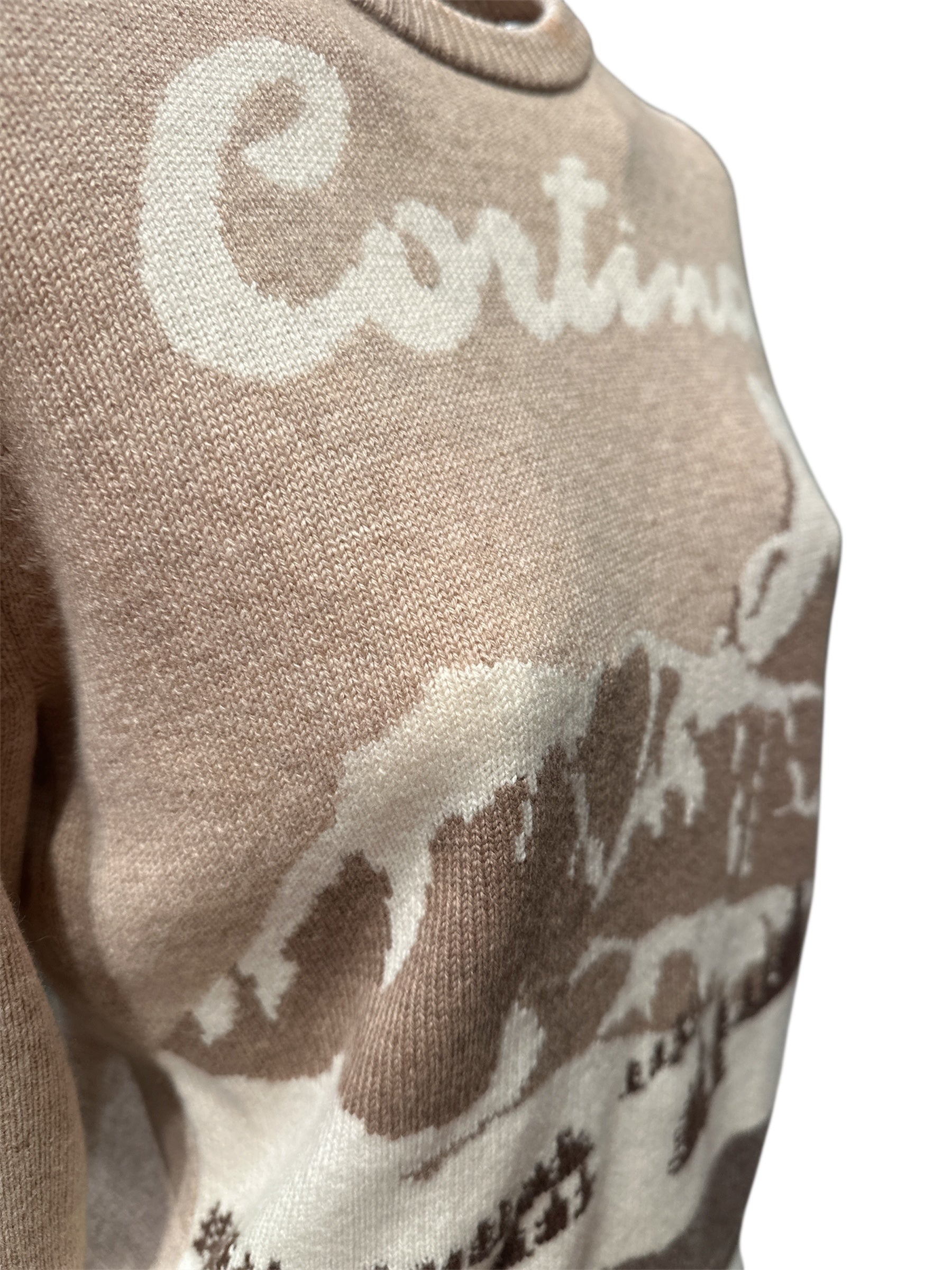Maglione MC2 St. Barth donna col. beige intarsio con decoro montagne e scritta Cortina con vestibilità regular, misto lana cashmere