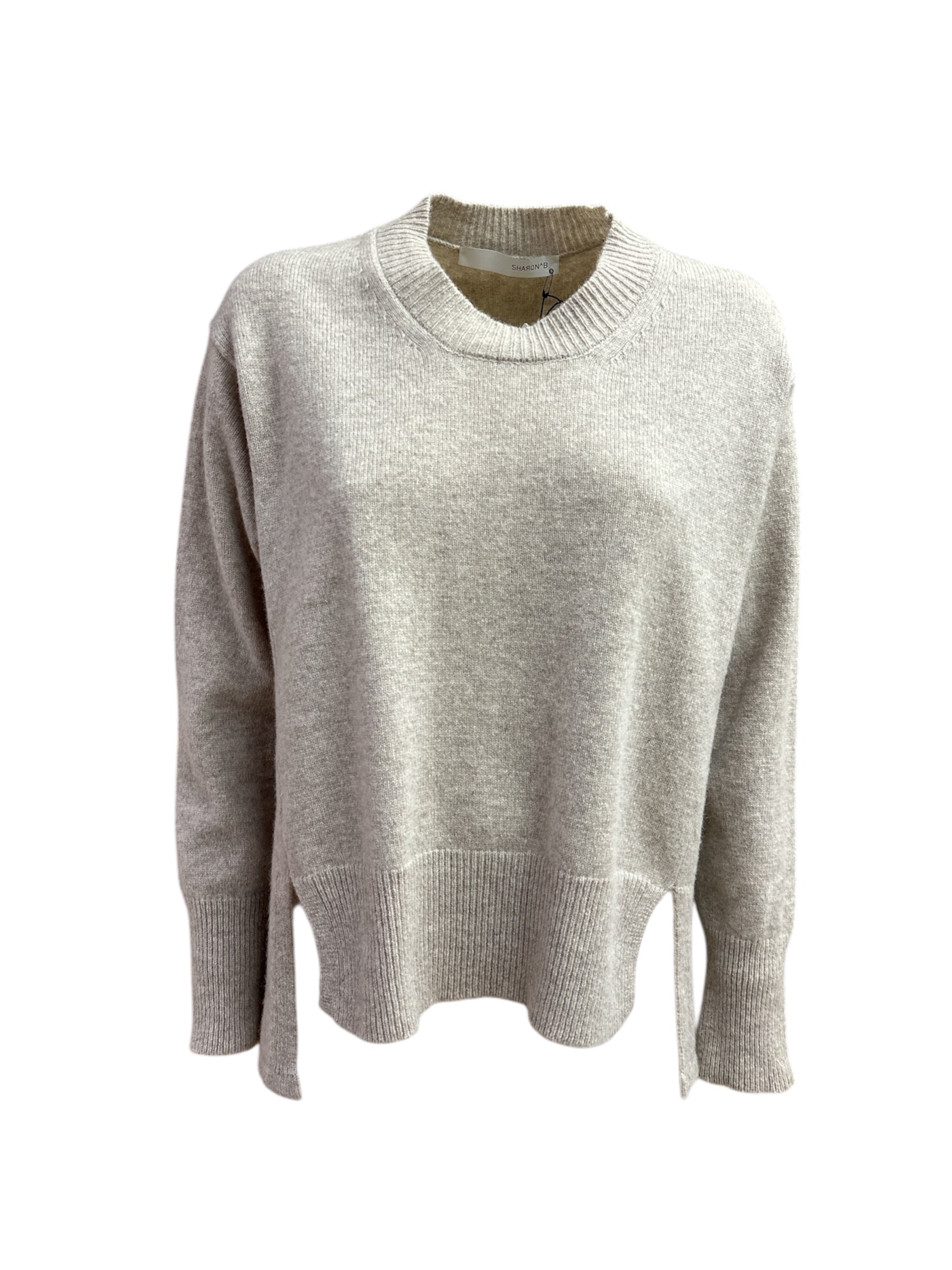Maglia girocollo color segale Sharon^B con spacchi laterali