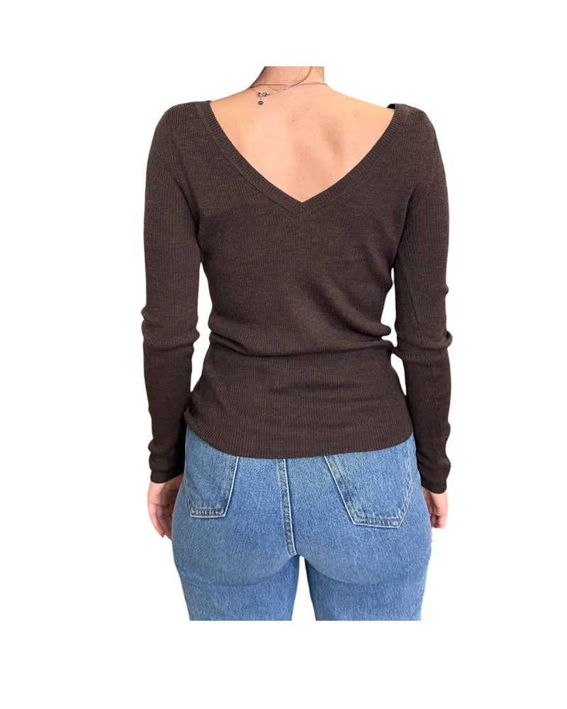 Tulisa MC2 Saint Barth Sweater Ribbed with reversible V-neck Color: Blue Material: 100% Merino Wool