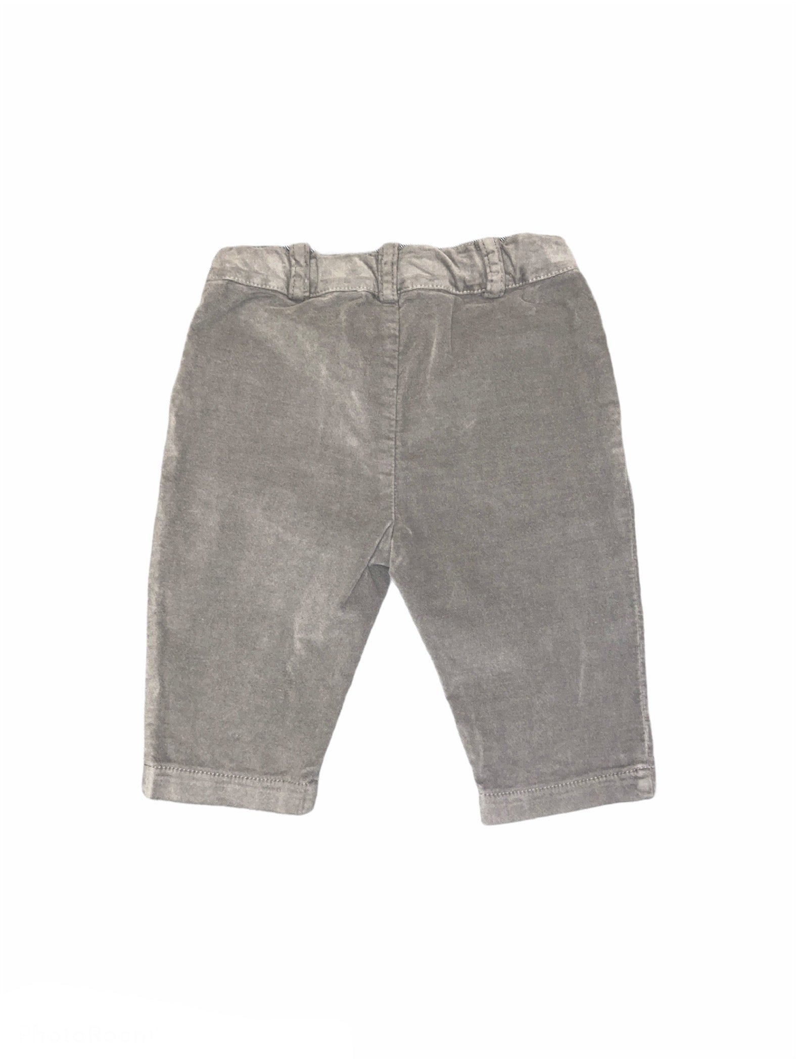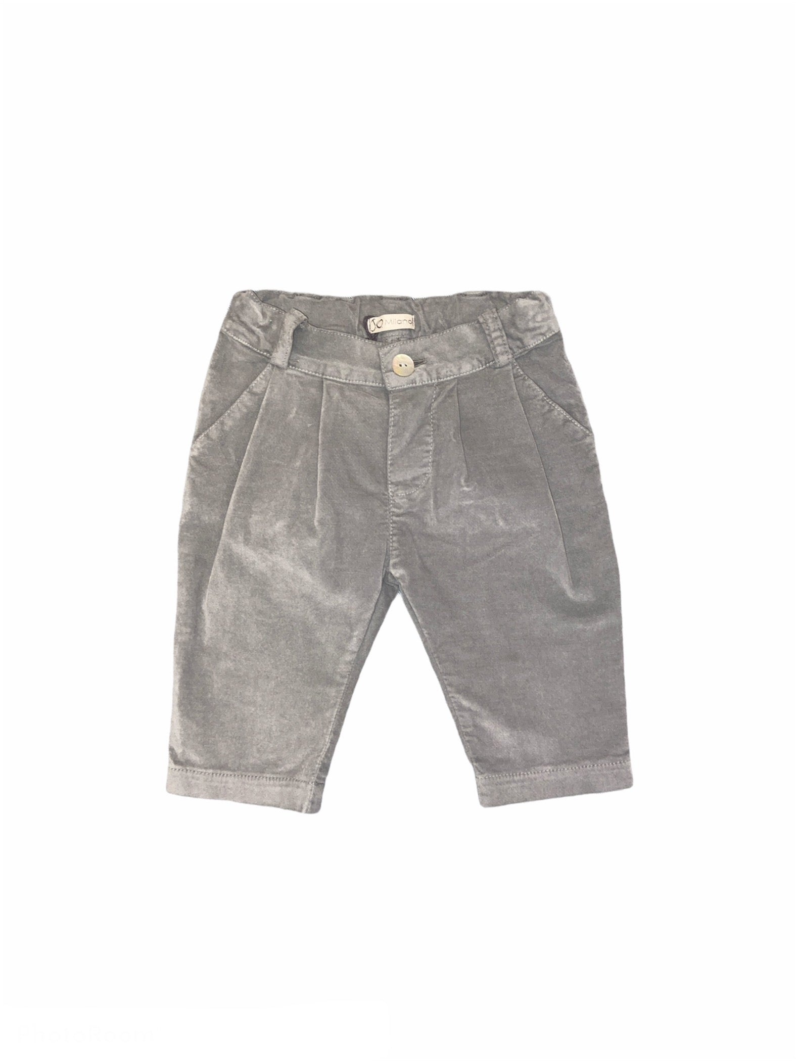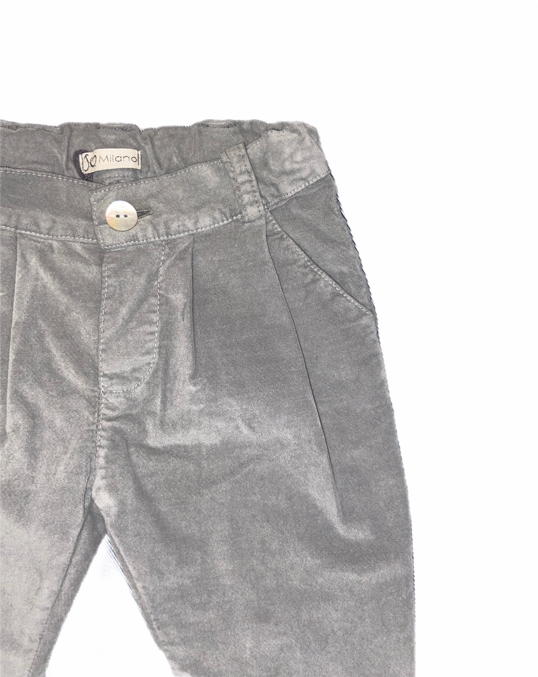 Pantalone J.O. MILANO in velluto liscio grigio fumo, cinturone elastico e pinces, tasche frontali