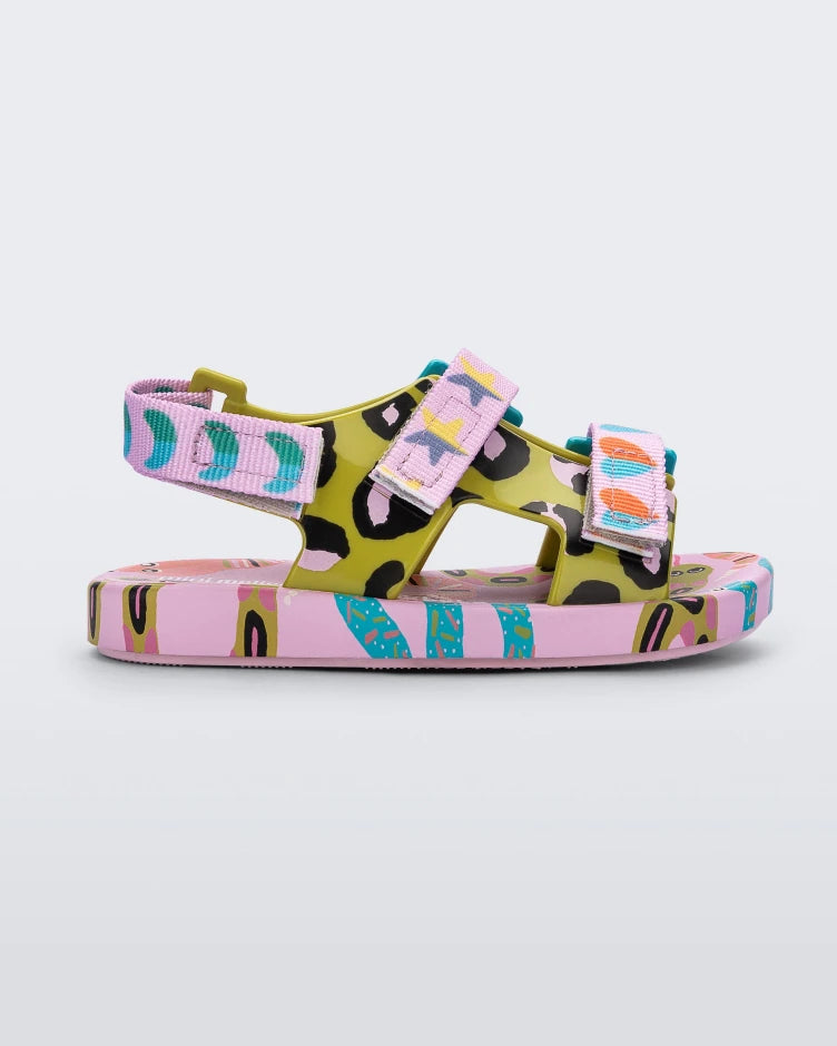 SANDALO CON FANTASIA LEOPARDATA ROSA LILLA IN GOMMA PROFUMATA