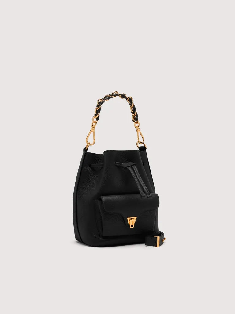 Coccinelle Beat è una tra le icone del brand: la distintiva chiusura a battente con il plettro è il simbolo d’identità Coccinelle, che per questa collezione si reinventa con funzionalità contemporanee ed eleganti.Il mini secchiello è impreziosito dal manico in pelle e catena, un mix perfetto tra struttura e morbidezza, tra praticità e design contemporaneo. Questo modello è realizzato in pelle lavorata tramite specifici macchinari e poi bottalata al fine di mantenerne la morbidezza. È una pelle molto resistente che si presta a una facile pulizia, ideale per un uso quotidiano.
