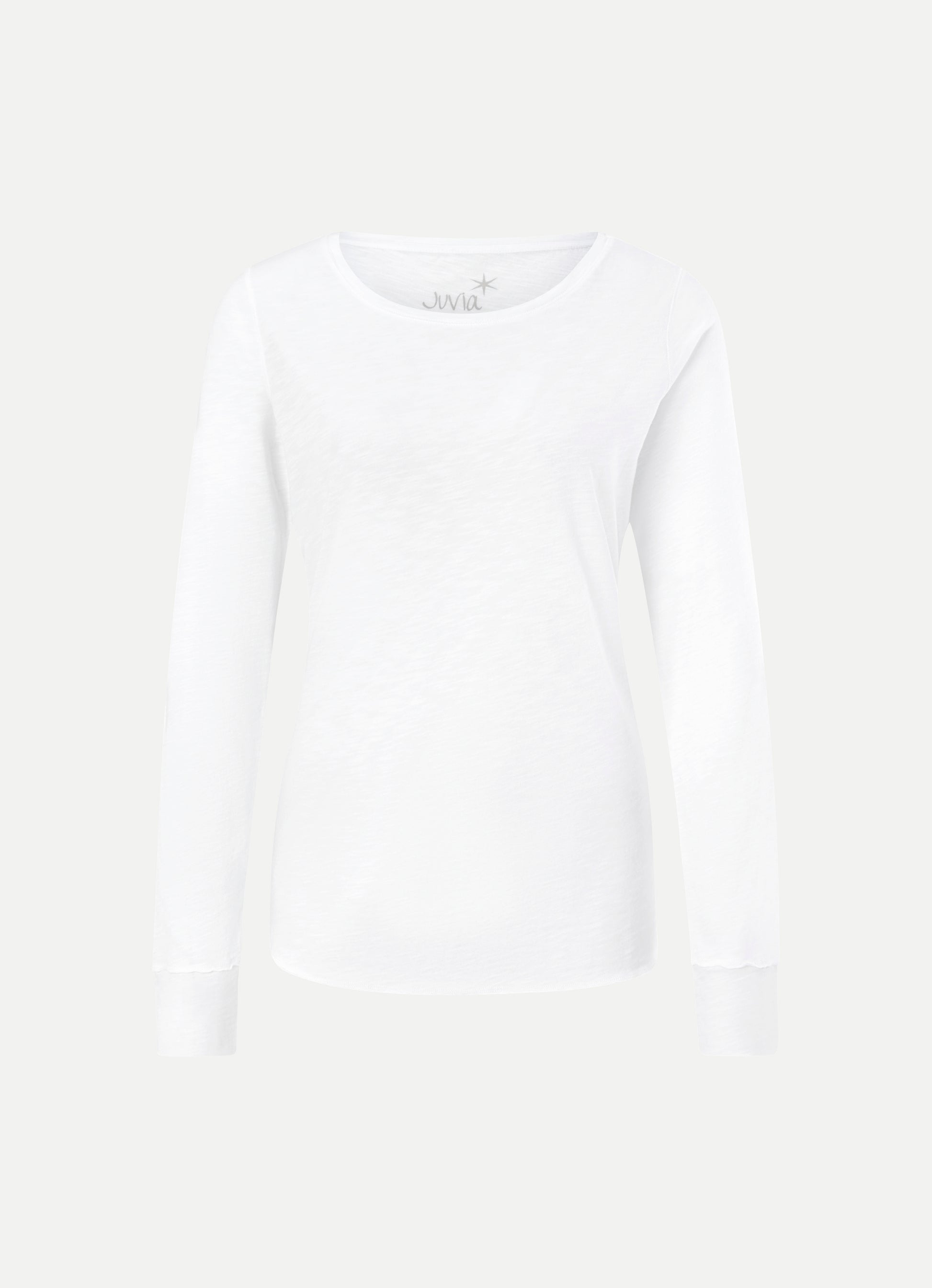 T-shirt JUVIA manica lunga,misto cotone e viscosa con scollo rotondo e polsini larghi.Bordi taglio vivo.
