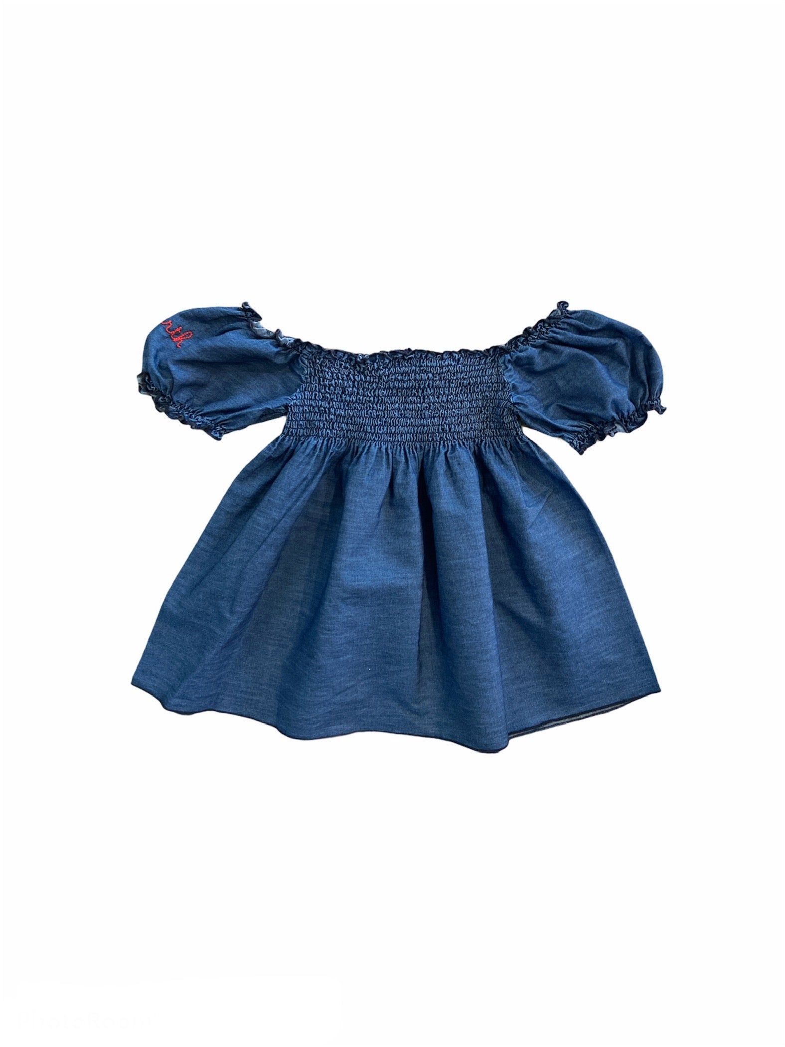 CAMICIA BAMBINA ST. BARTH IN DENIM LEGGERO DI COTONE BLU CON CORPINO ELASTICO