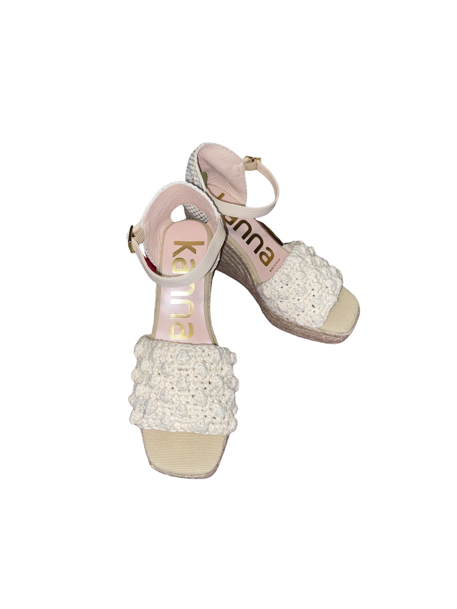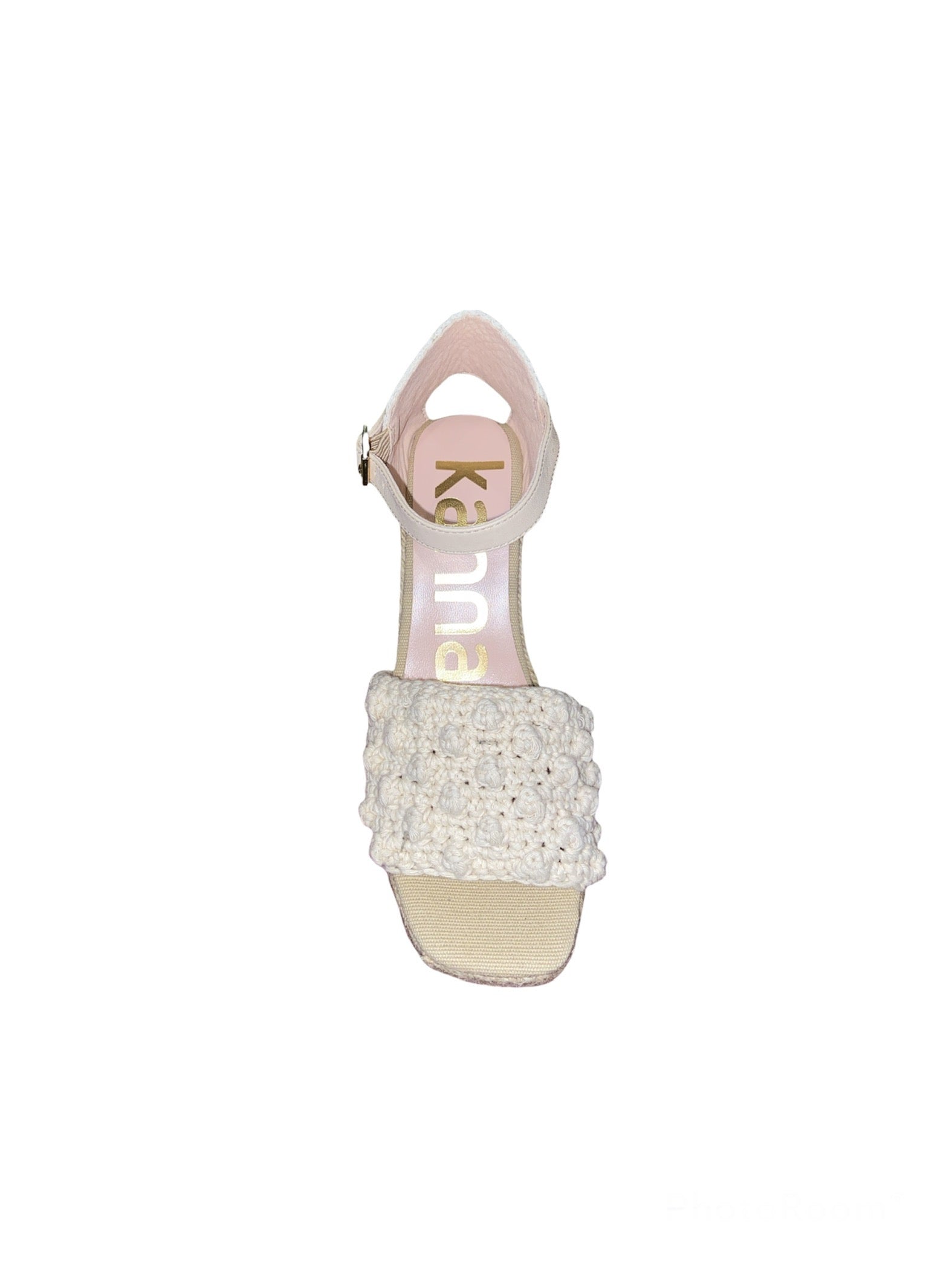 Zeppa KANNA crochet beige, spuntata con laccetto alla caviglia.